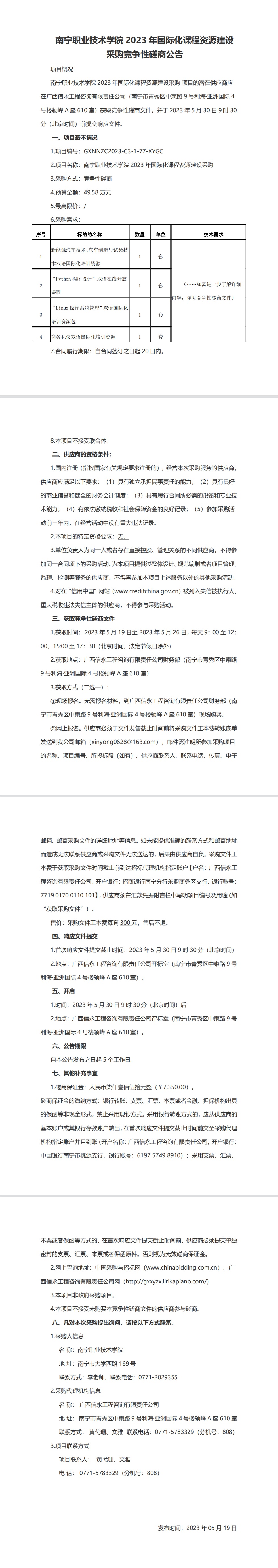 南宁职业技术学院2023年国际化课程资源建设采购竞争性磋商公告