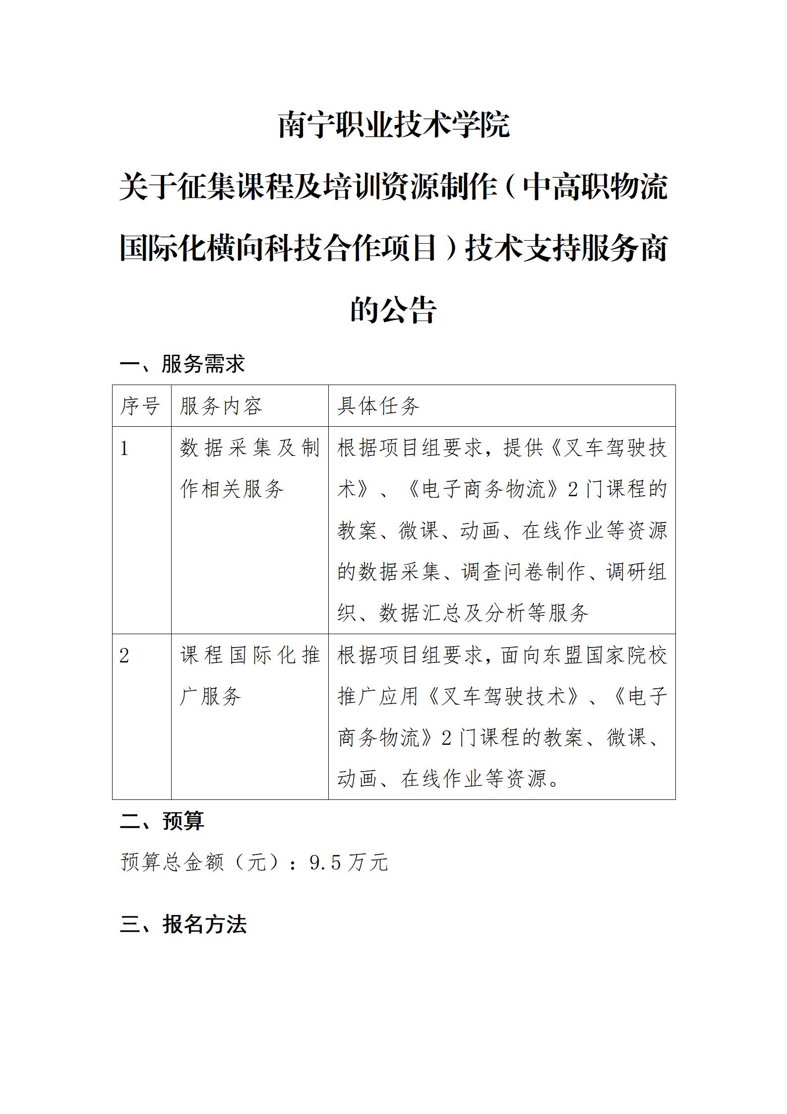 南宁职业技术学院关于征集课程及培训资源制作(中高职物流国际化横向科技合作项目)技术支持服务商的公告