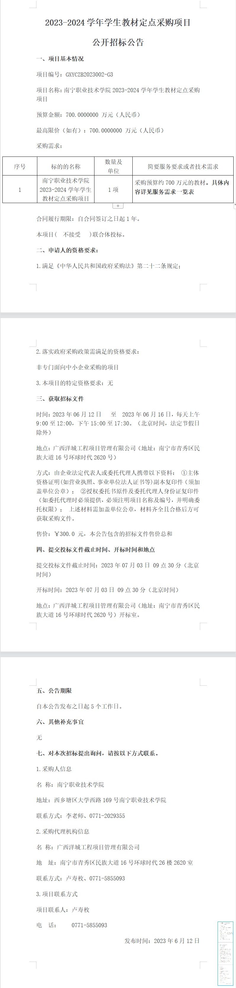 2023-2024学年学生教材定点采购项目-公开招标公告