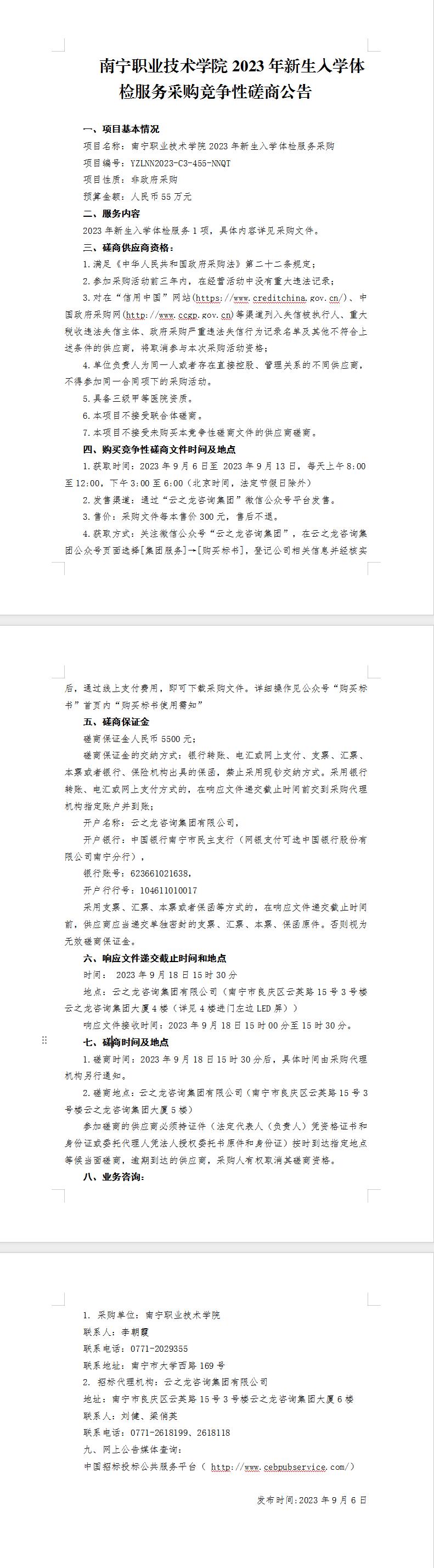 南宁职业技术学院2023年新生入学体检服务采购竞争性磋商公告