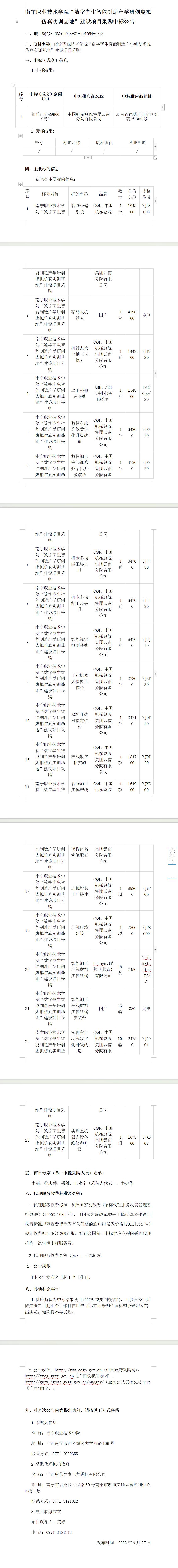 南宁职业技术学院“国家智能建造与5G通信虚拟仿真实训基地-智能加工虚拟仿真实训中心”建设项目中标公告
