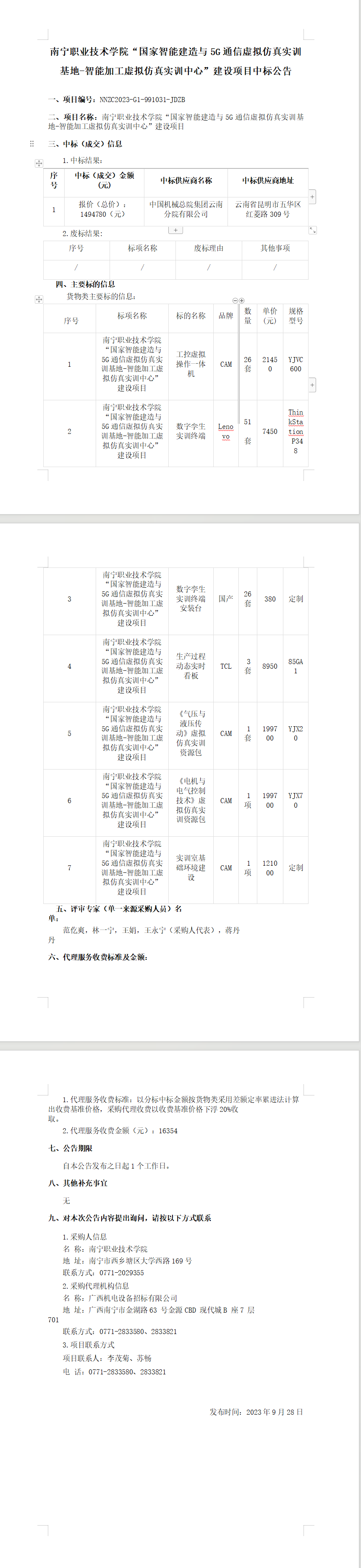 下一条:南宁职业技术学院“数字孪生智能制造产学研创虚拟仿真实训基地”建设项目采购中标公告