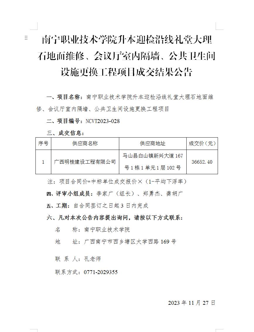 南宁职业技术学院校园主干道透水砖路面翻修平整工程等项目-成交结果公告