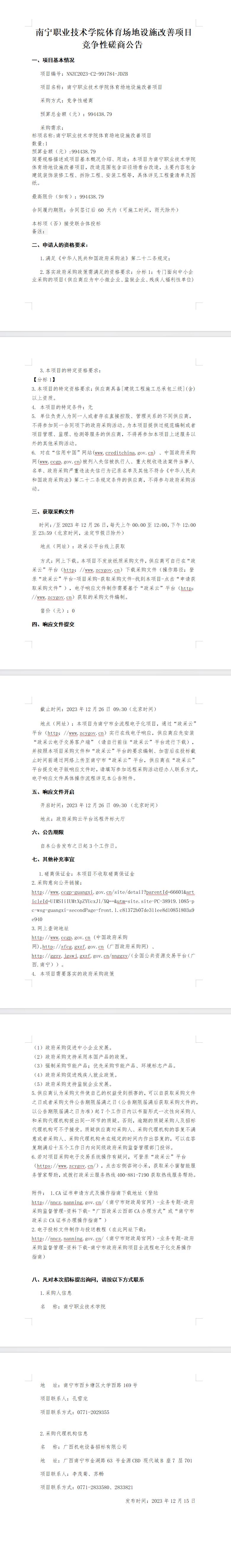 南宁职业技术学院体育场地设施改善项目 -竞争性谈判公告