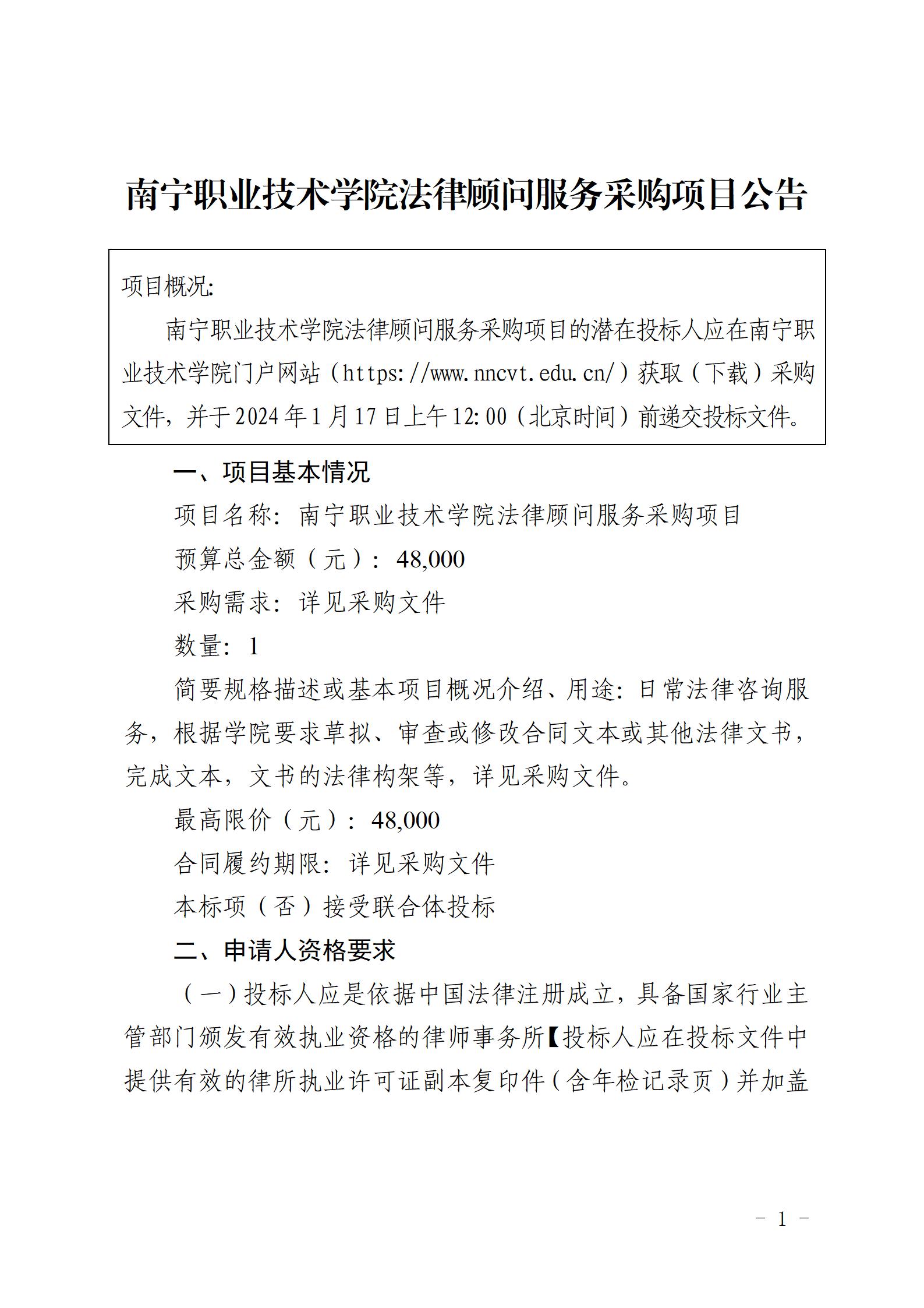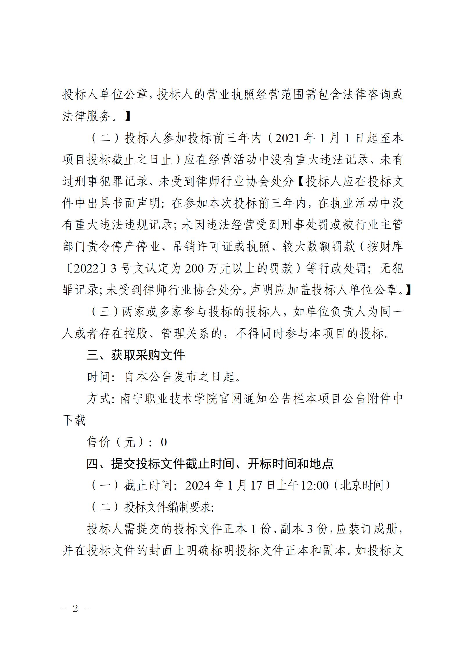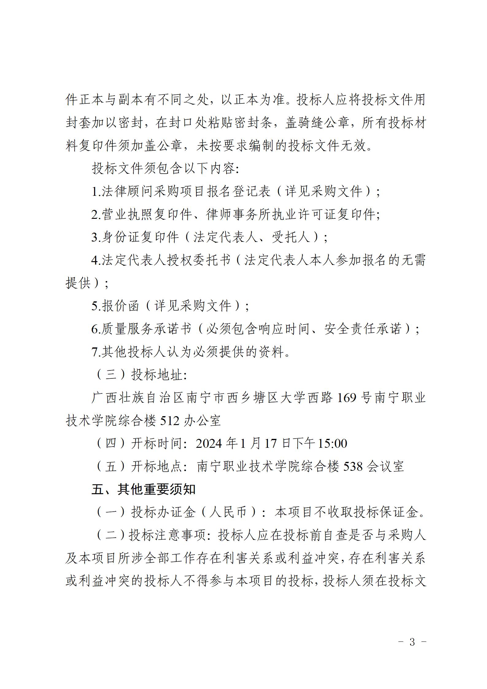 南宁职业技术学院法律顾问服务采购项目采购文件.docx