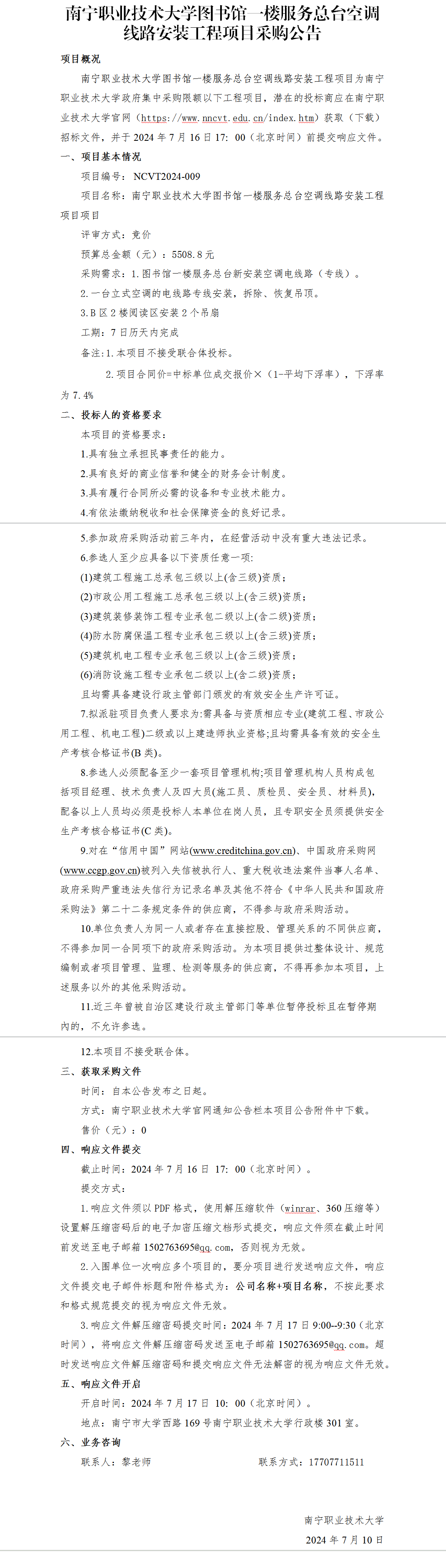 南宁职业技术学院四分院活动中心101、102修缮工程项目采购公告