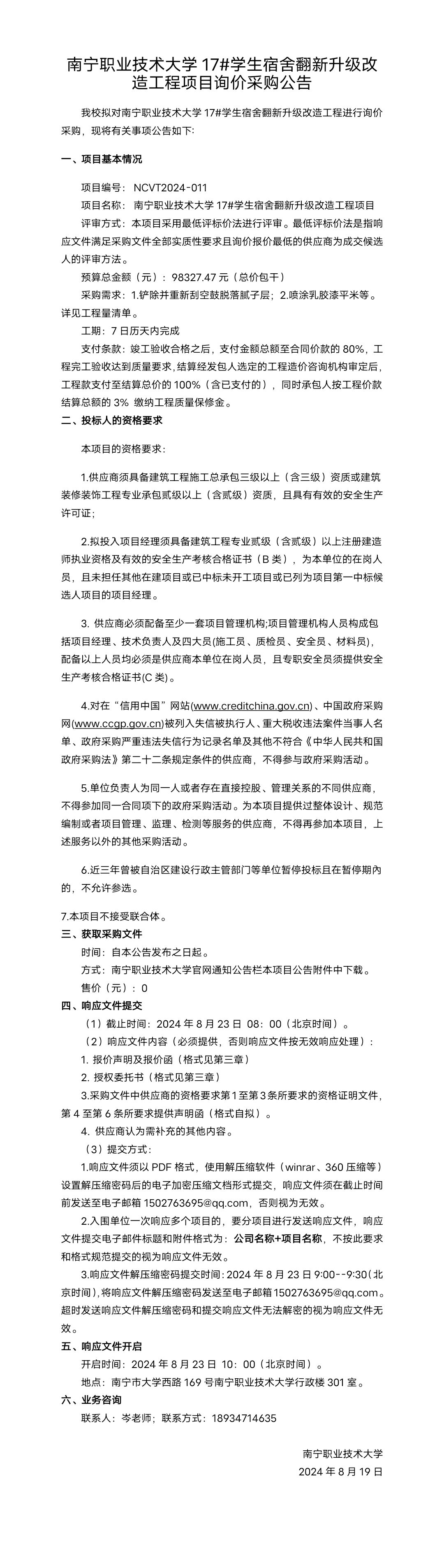 必赢优惠y272net17#学生宿舍翻新升级改造工程项目采购公告