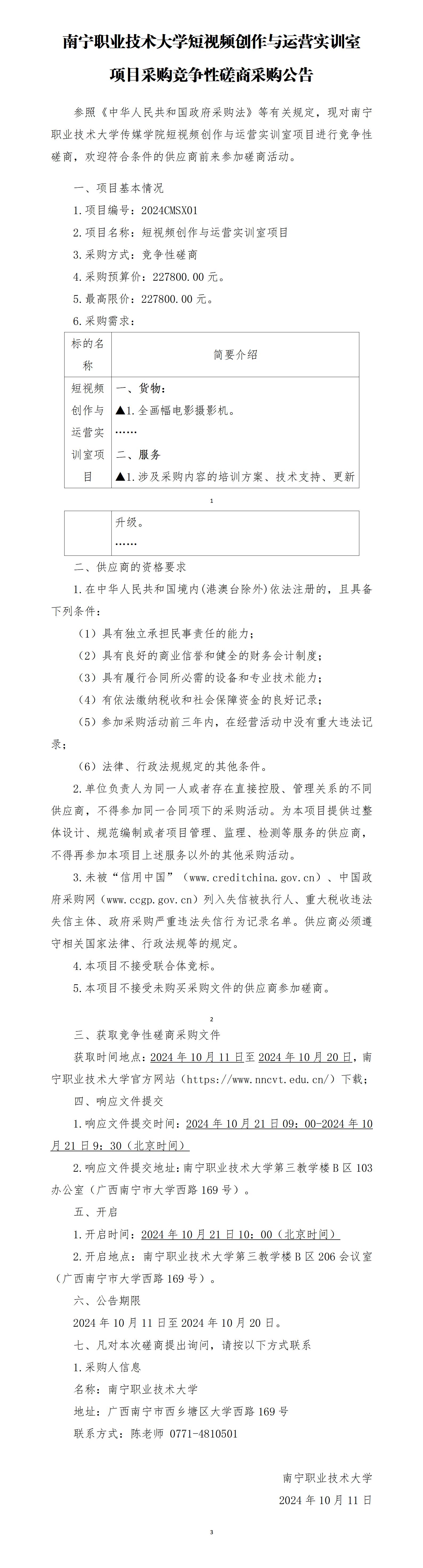 必赢优惠y272net短视频创作与运营实训室项目采购竞争性磋商采购公告