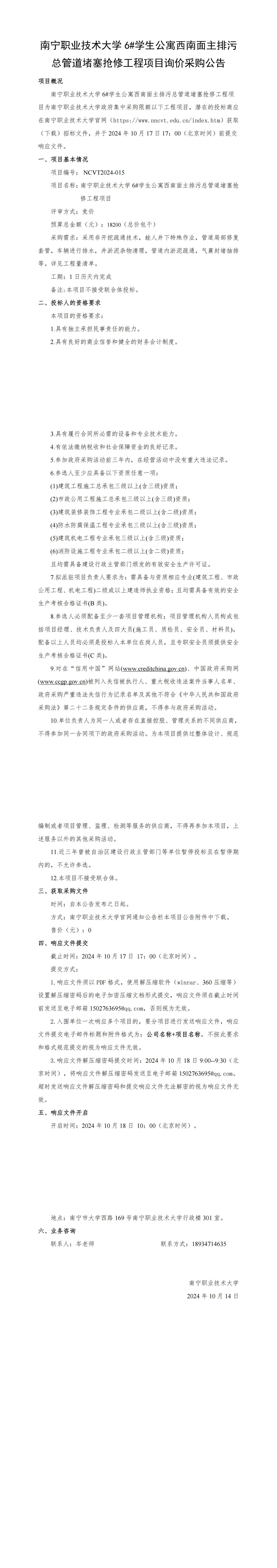 必赢优惠y272net6#学生公寓西南面主排污总管道堵塞抢修工程询价采购公告