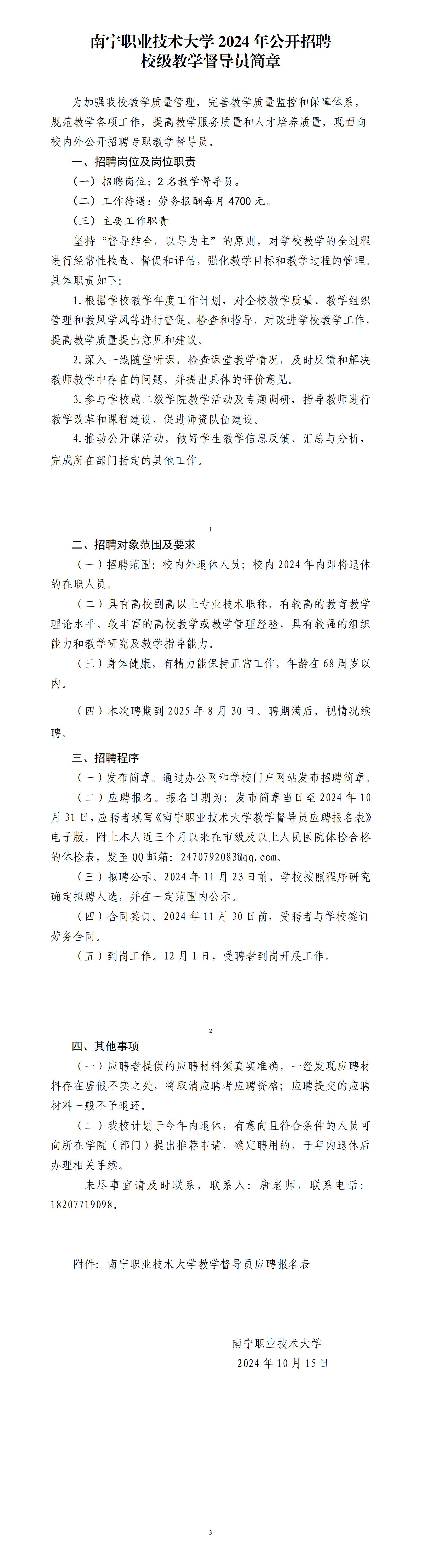 必赢优惠y272net2024年公开招聘校级教学督导员简章