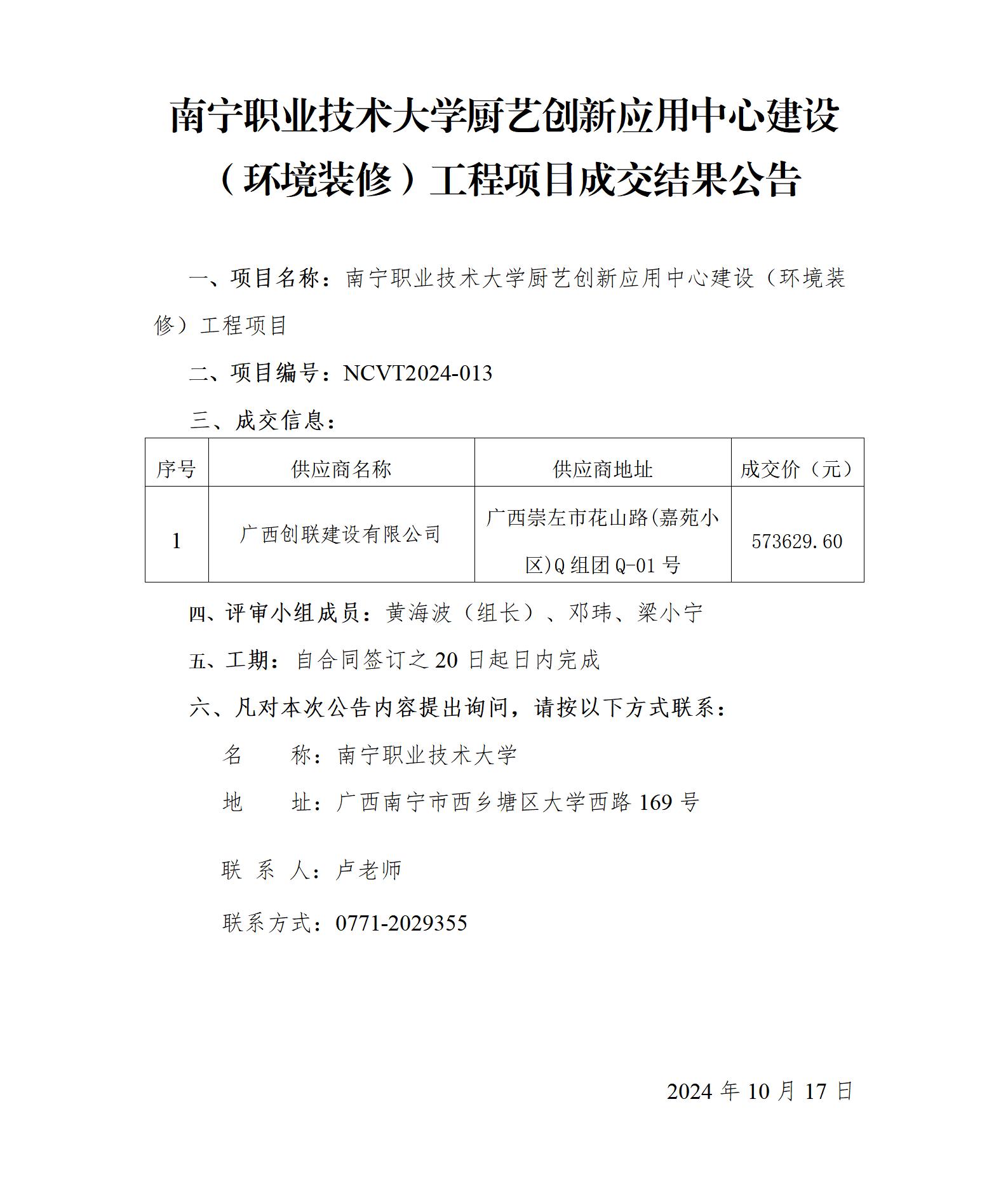 必赢优惠y272net厨艺创新应用中心建设(环境装修)工程项目成交公告