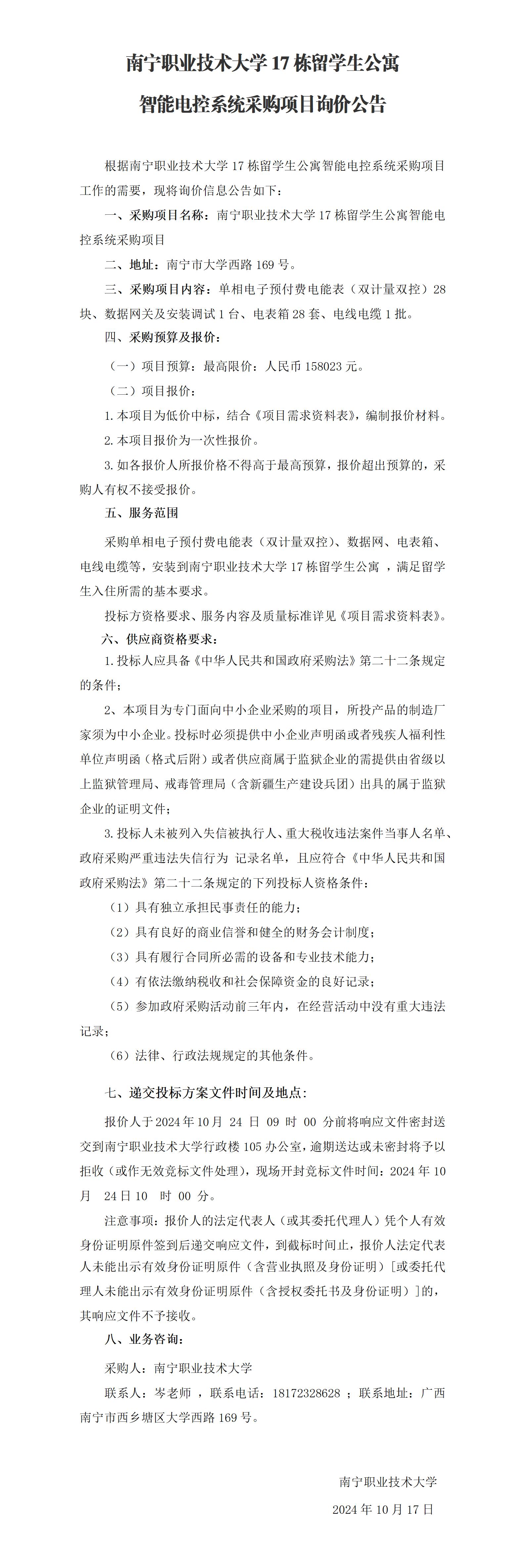 必赢优惠y272net17栋留学生公寓智能电控系统采购项目询价公告