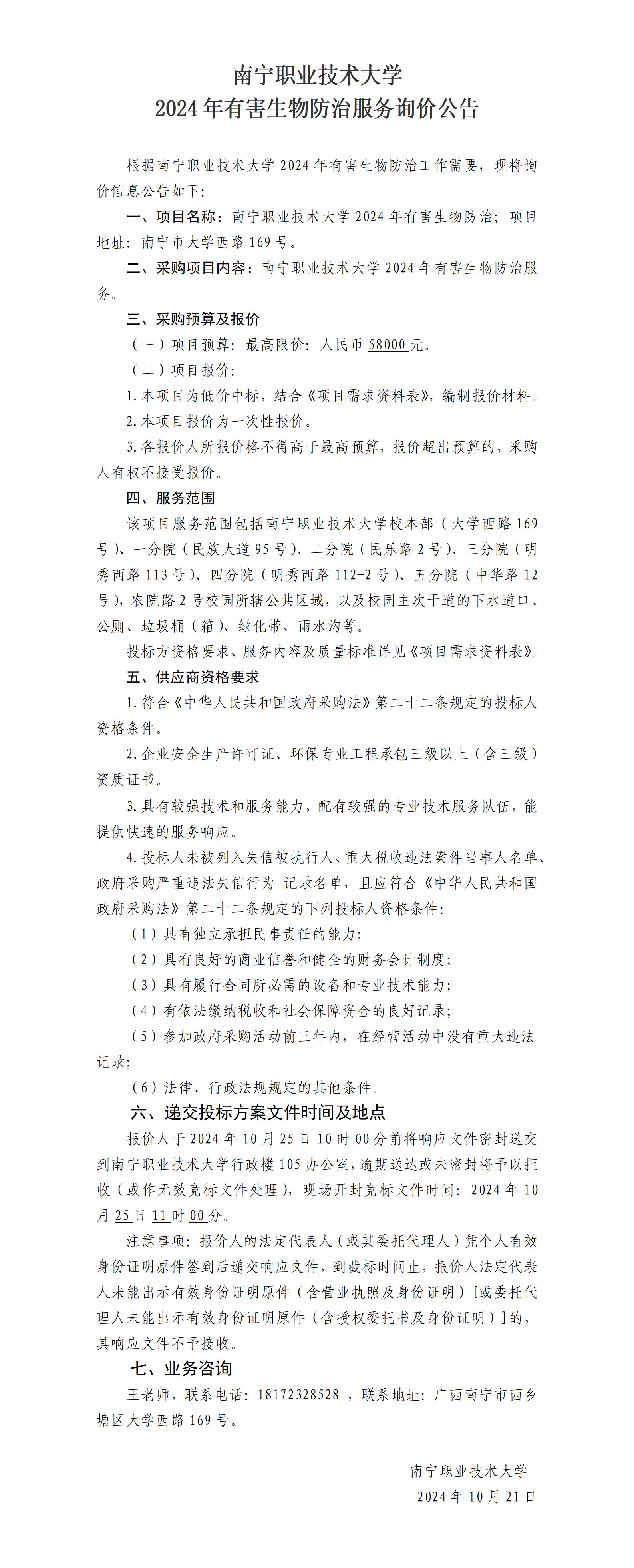 必赢优惠y272net2024年有害生物防治服务询价公告