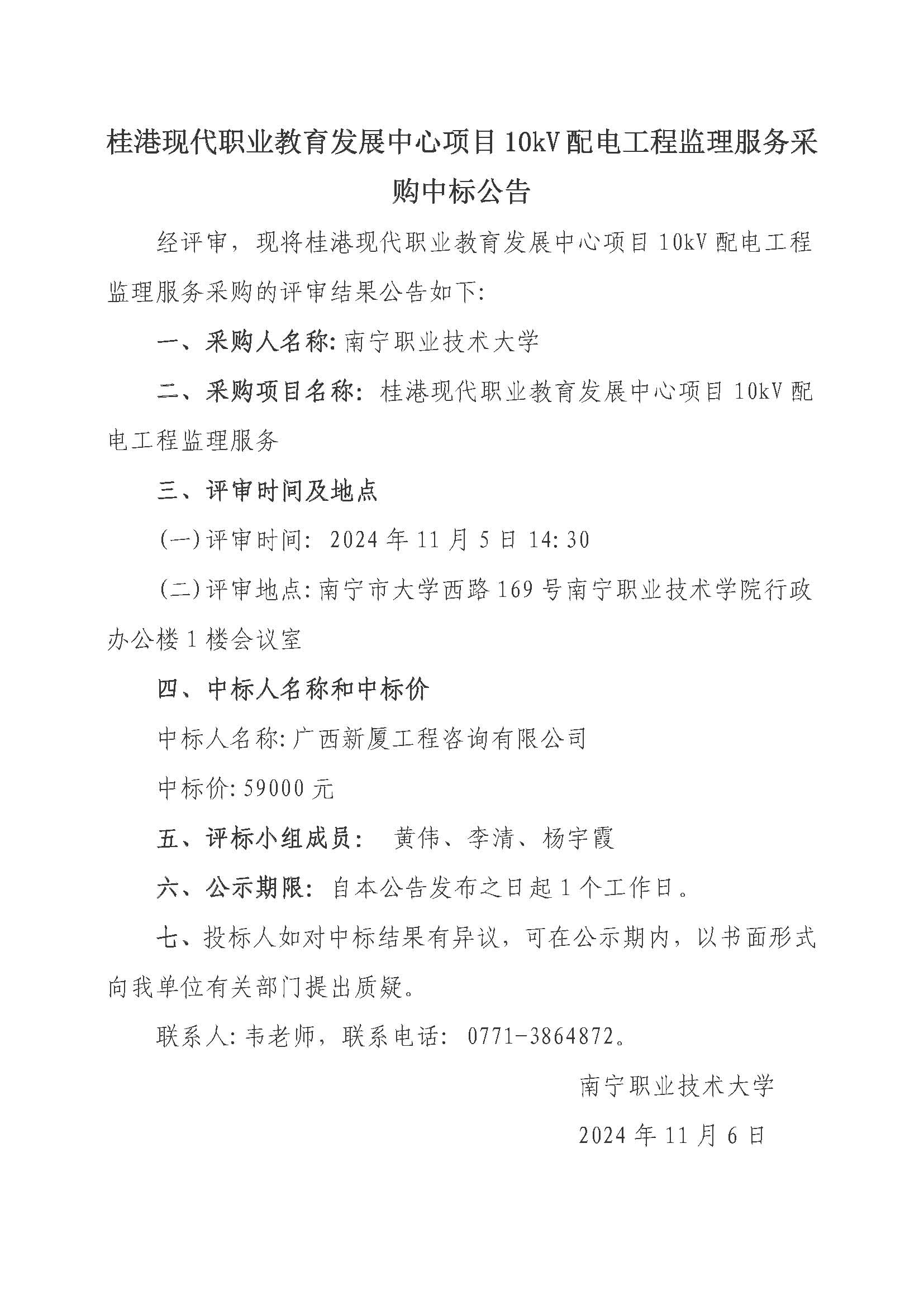 桂港现代职业教育发展中心项目10kV配电工程监理服务采购中标公告