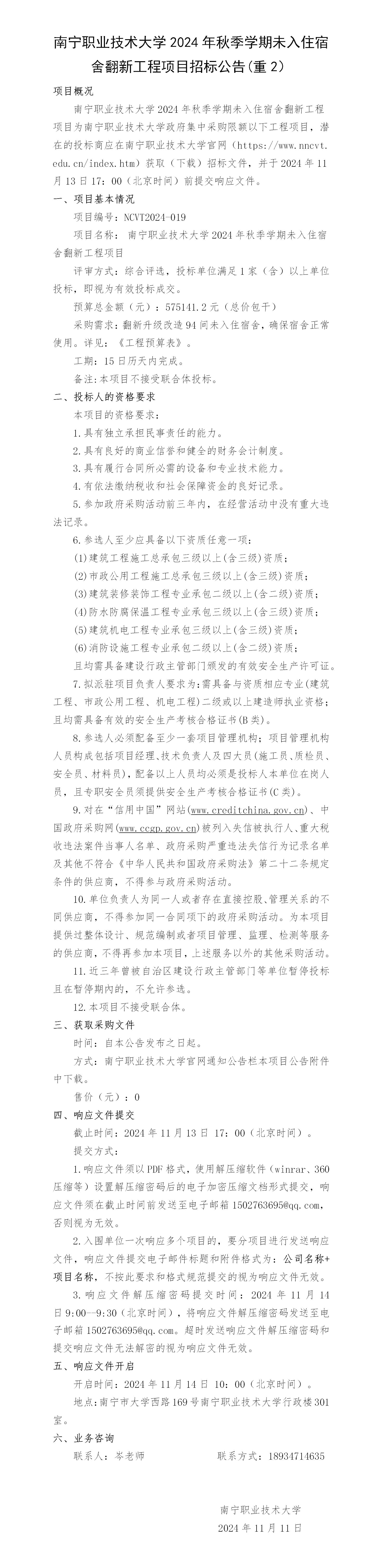 附件6:2024年秋季学期未入住宿舍翻新工程项目-招标文件(重2).docx