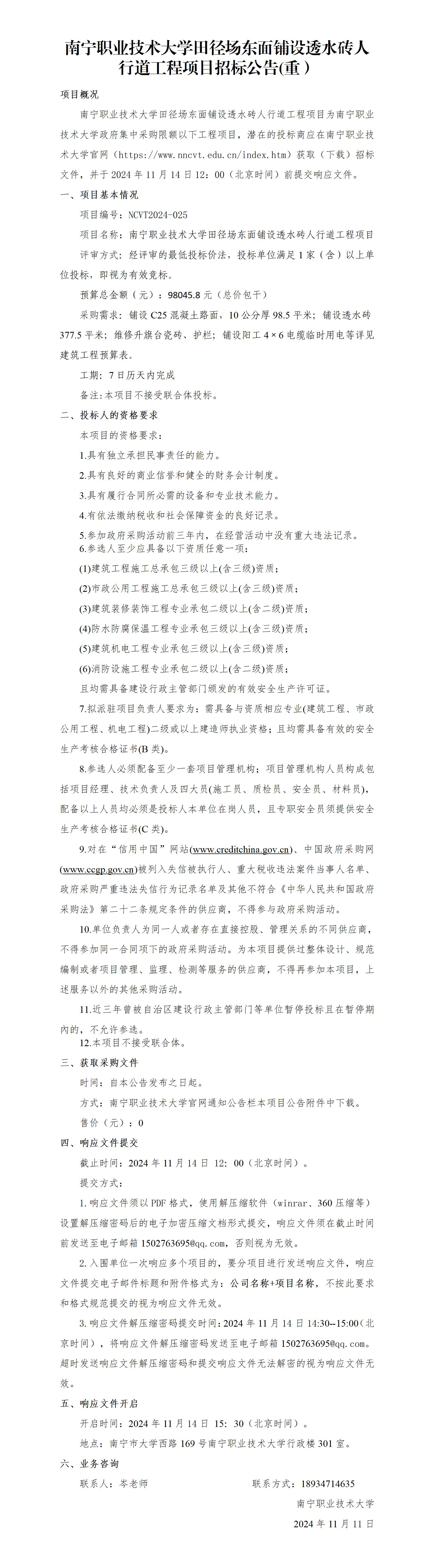 必赢优惠y272net田径场东面铺设透水砖人行道工程-采购公告(重)