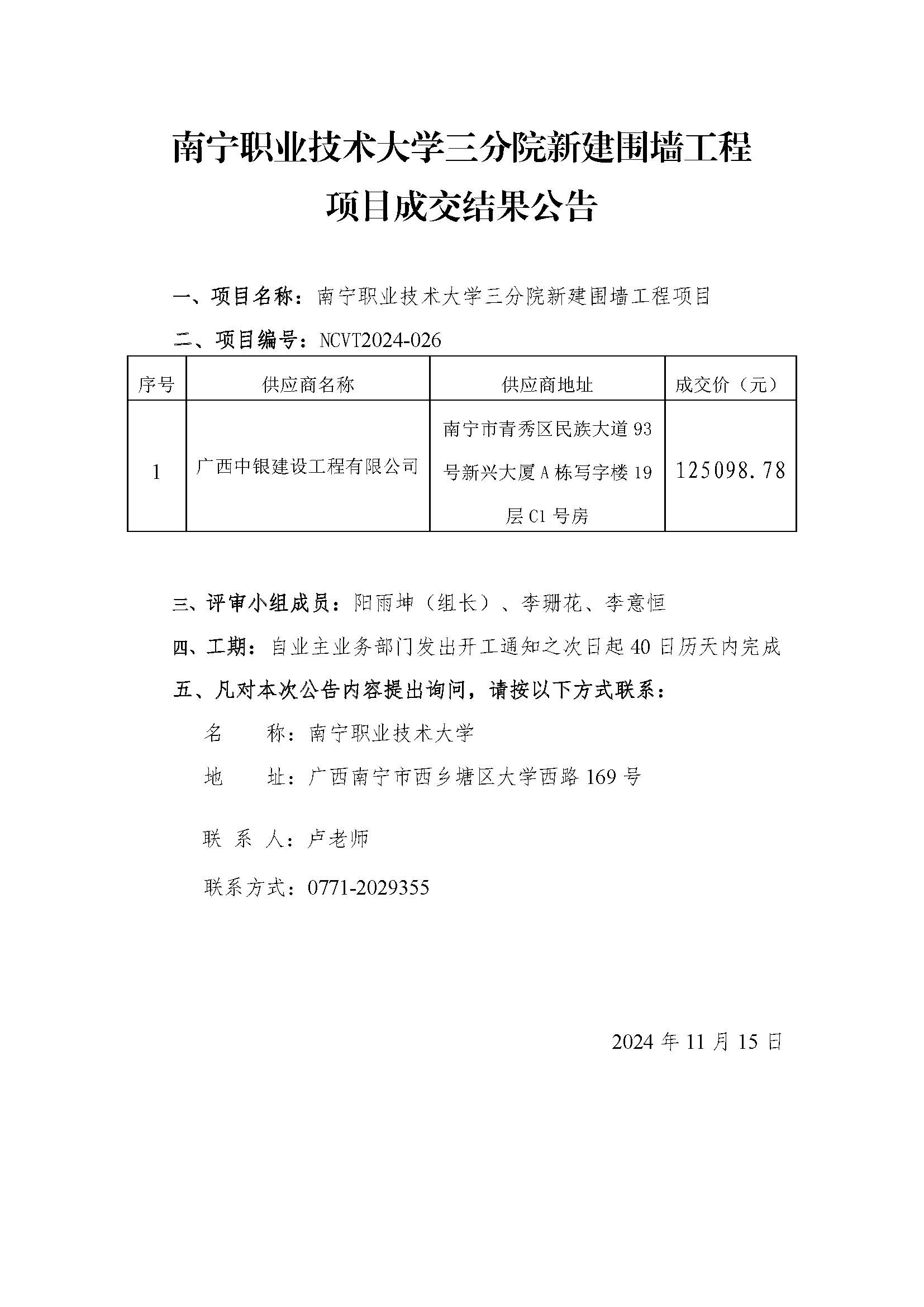 必赢优惠y272net三分院新建围墙工程项目成交公告