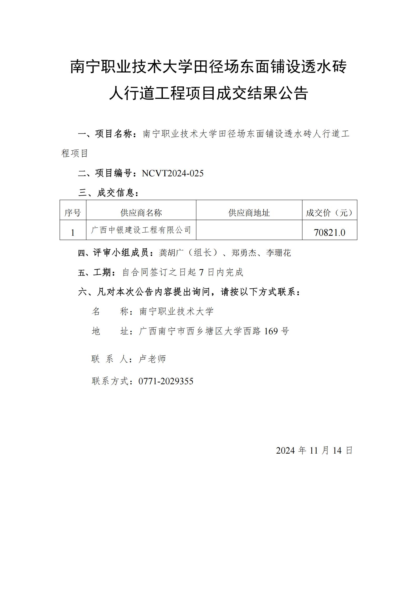 必赢优惠y272net田径场东面铺设透水砖人行道工程项目成交公告