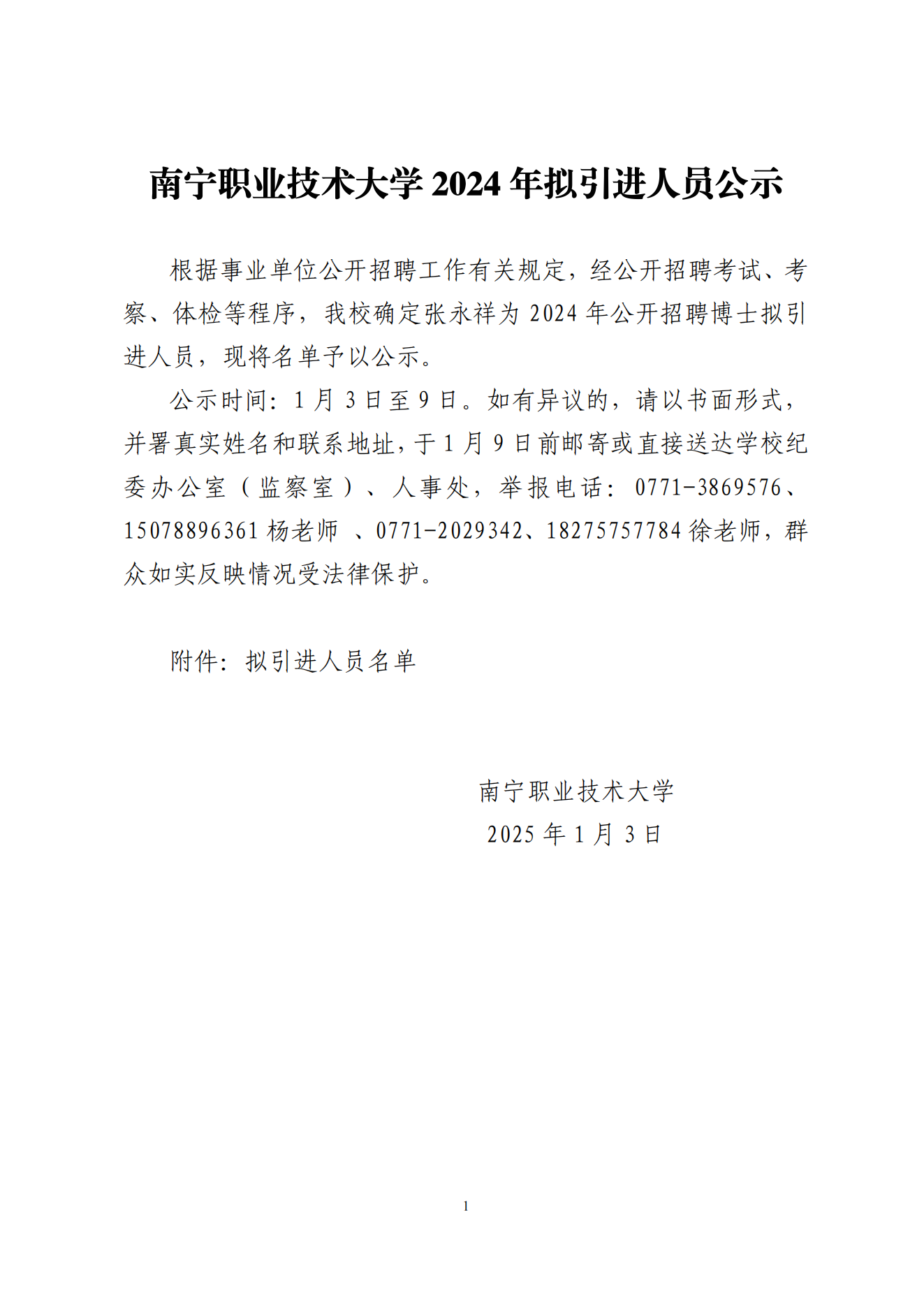 南职公告