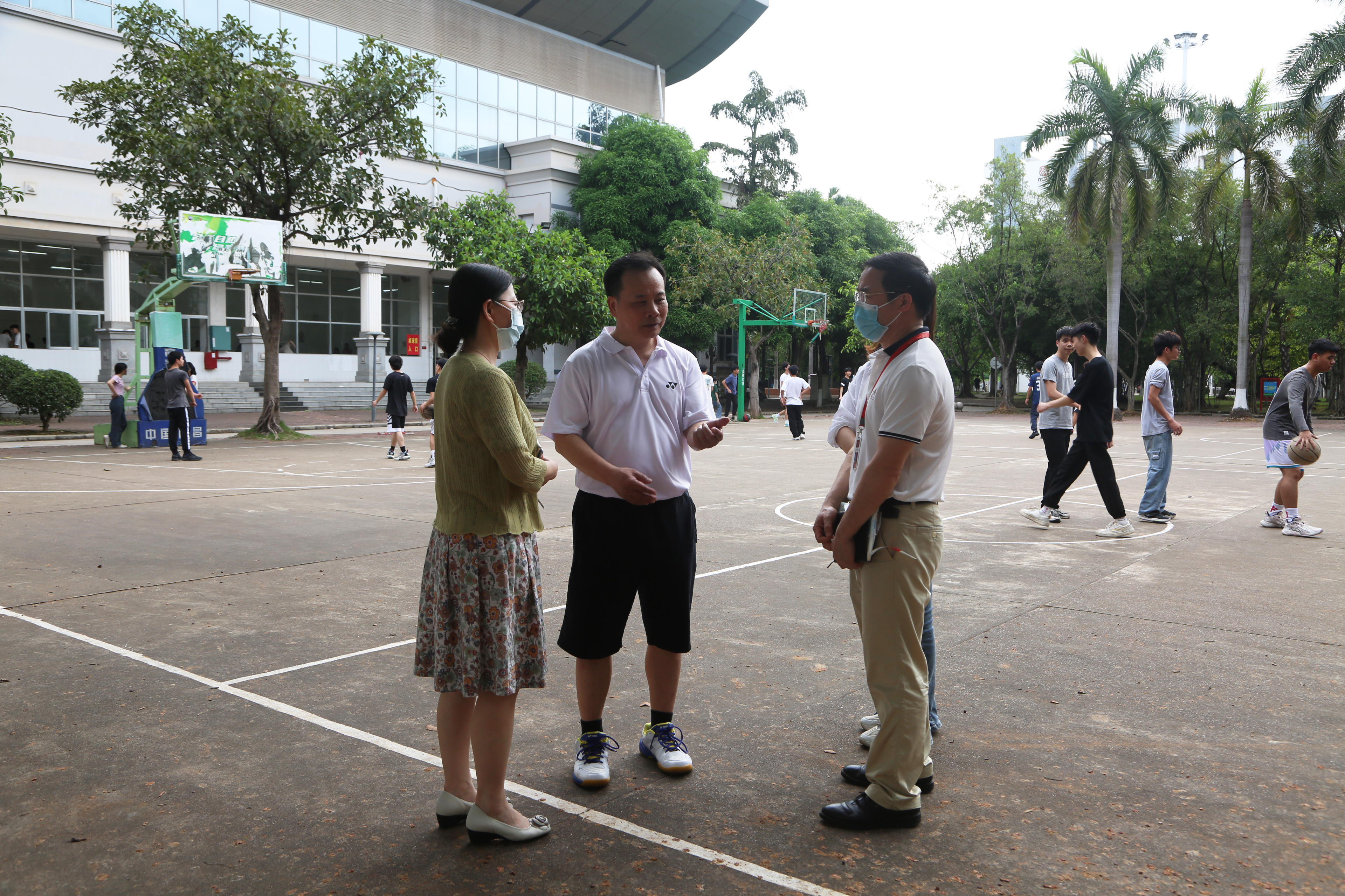 黄明瑞调研篮球课上课情况(冯少卫/摄)