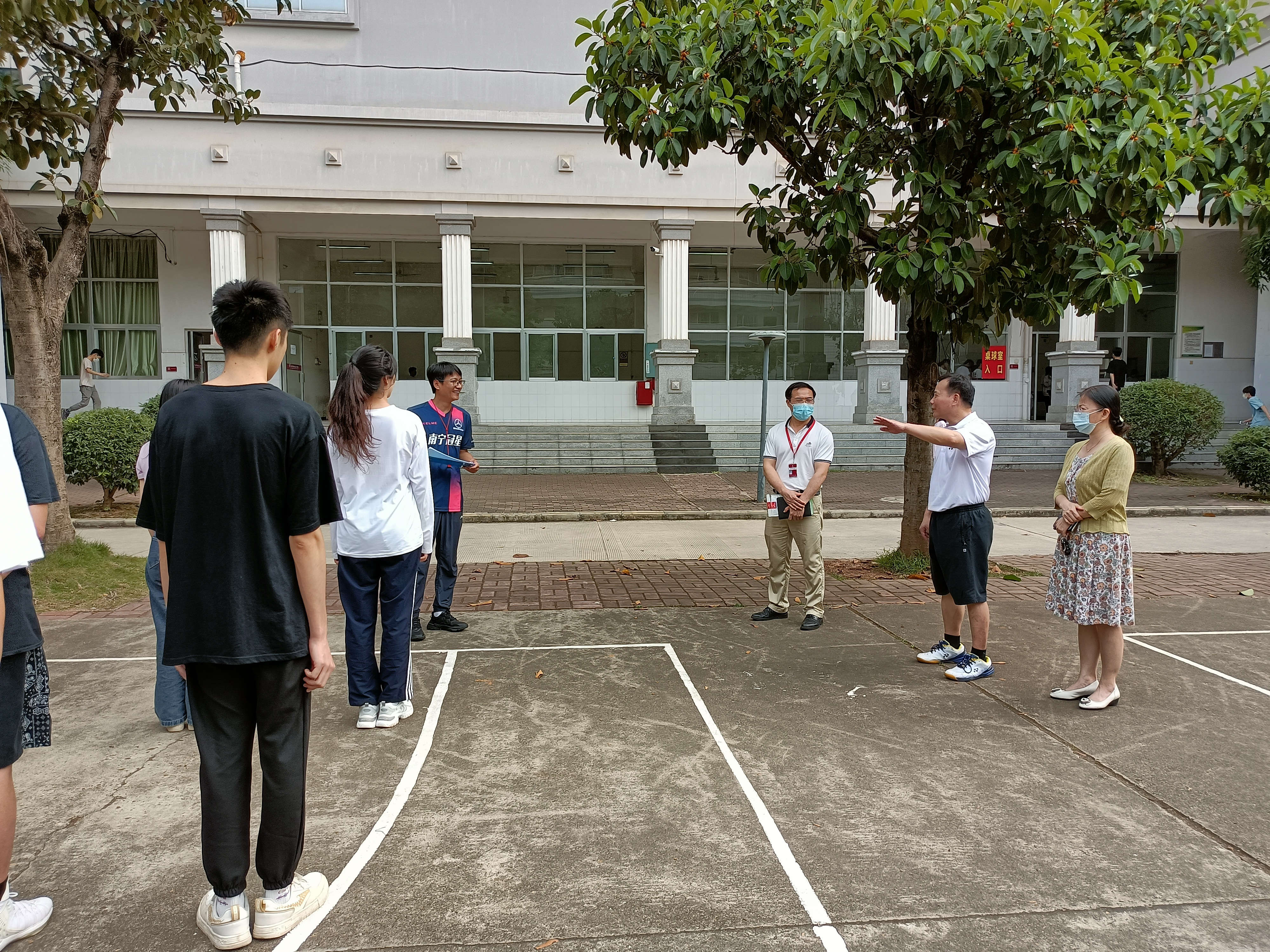 4月24日下午,学校党委书记黄明瑞走进体育馆和运动场,对疫情期间公共体育课的开展情况进行实地调研指导。人文教育学院院长陈秀泉,副院长王景等一同参加调研。