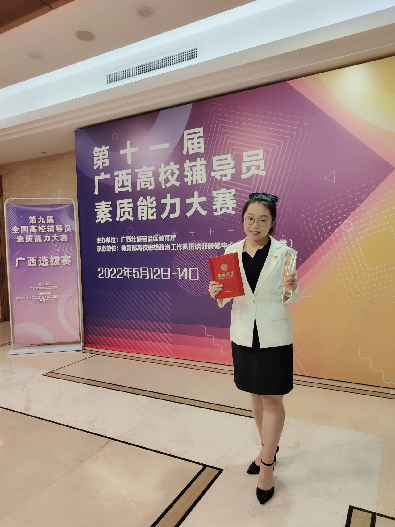 5月12日-14日,由广西壮族自治区教育厅主办,教育部高校思想政治队伍研修培训中心(广西师范大学)承办的第十一届广西高校辅导员素质能力大赛在桂林举行。必赢官网建筑工程学院辅导员郑思凭借扎实的理论基础和精湛的专业技能,从全区高校84位参赛选手中脱颖而出,荣获大赛一等奖,成为广西高职院校中唯一获此荣誉的辅导员。
