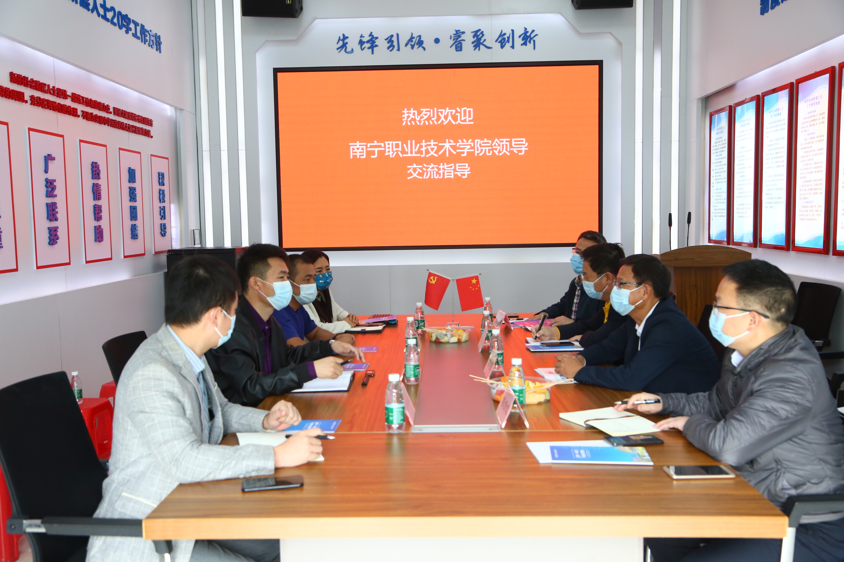 座谈交流会上,由南宁·中关村引荐的穆学教育、三帝打印、梯子科技三家企业负责人,各自就公司主营业务作了详细介绍,并表示希望在国际化合作办学、人才培养、学生就业指导等方面,与南职院一道深入开展校企合作。
