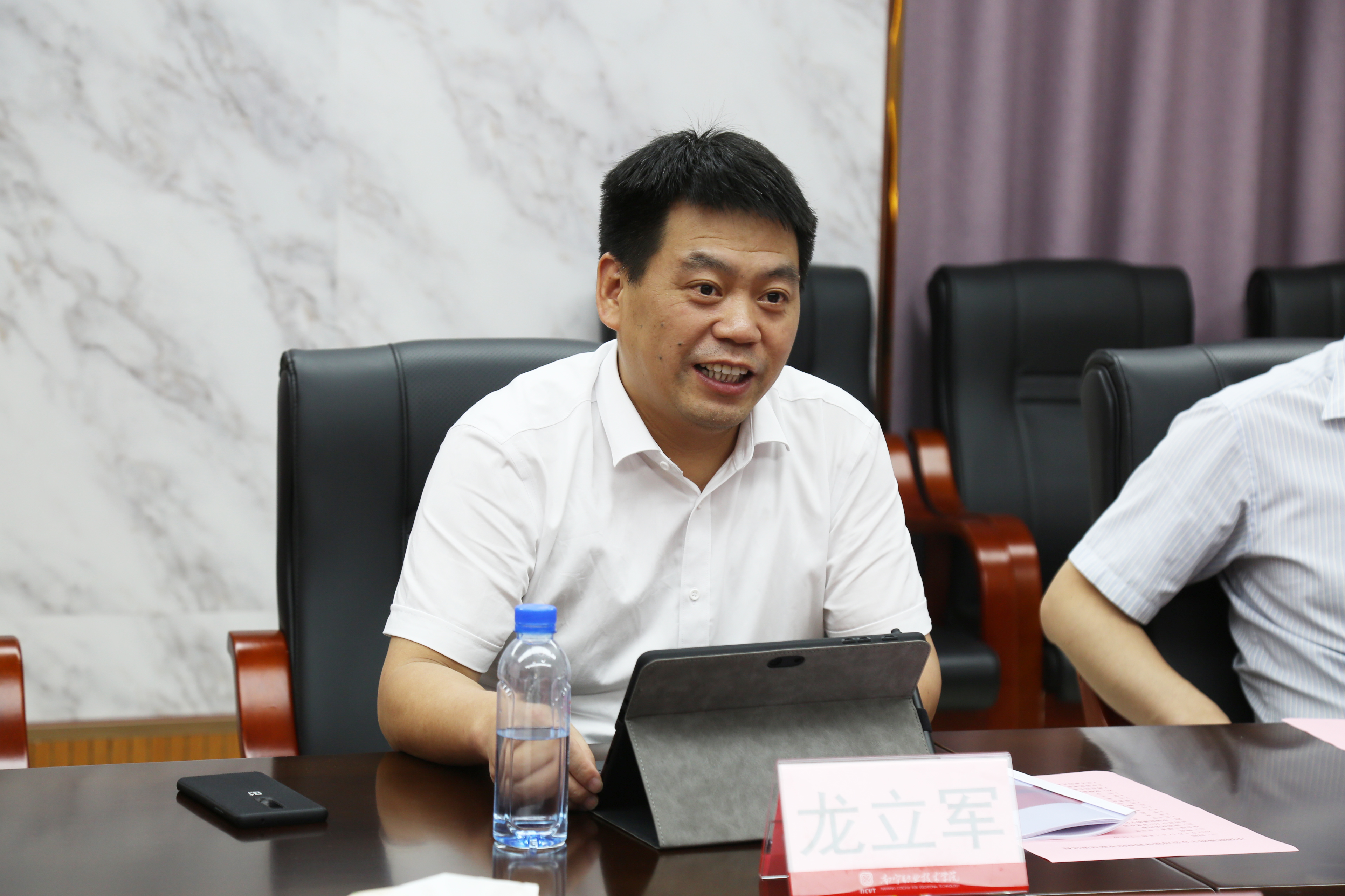 龙立军在座谈交流会上发言(南职融媒雷小梅/摄)