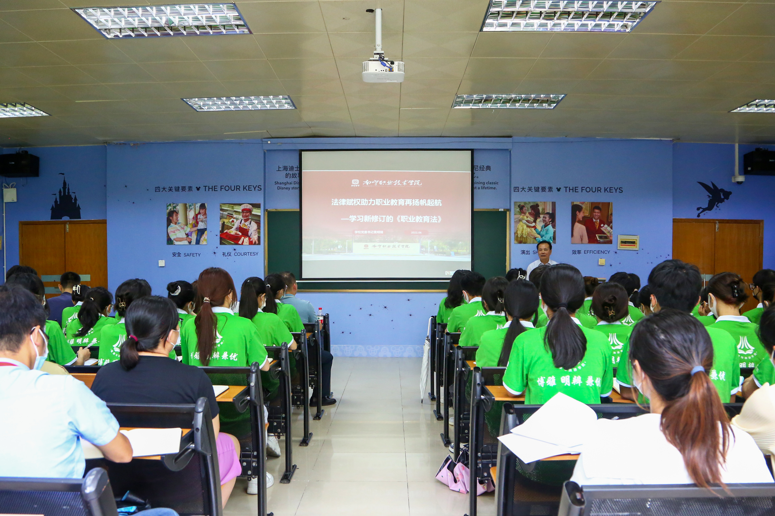 课堂上,黄明瑞带领师生一起,从修订背景及过程、主要修订亮点、如何学习贯彻等三个方面详细解读新修订的职业教育法,并结合必赢官网发展实际,综合分析必赢官网未来职业发展的要求、方向和目标。黄明瑞谈到,新修订的职业教育法内容全面、丰富,充分吸收了党的十八大以来职教改革发展成果,将诸多重大改革举措上升为法律条款,为我们全面建设“双高”校、全力抓好升本工作,推动学校高质量发展提供了坚实保障。