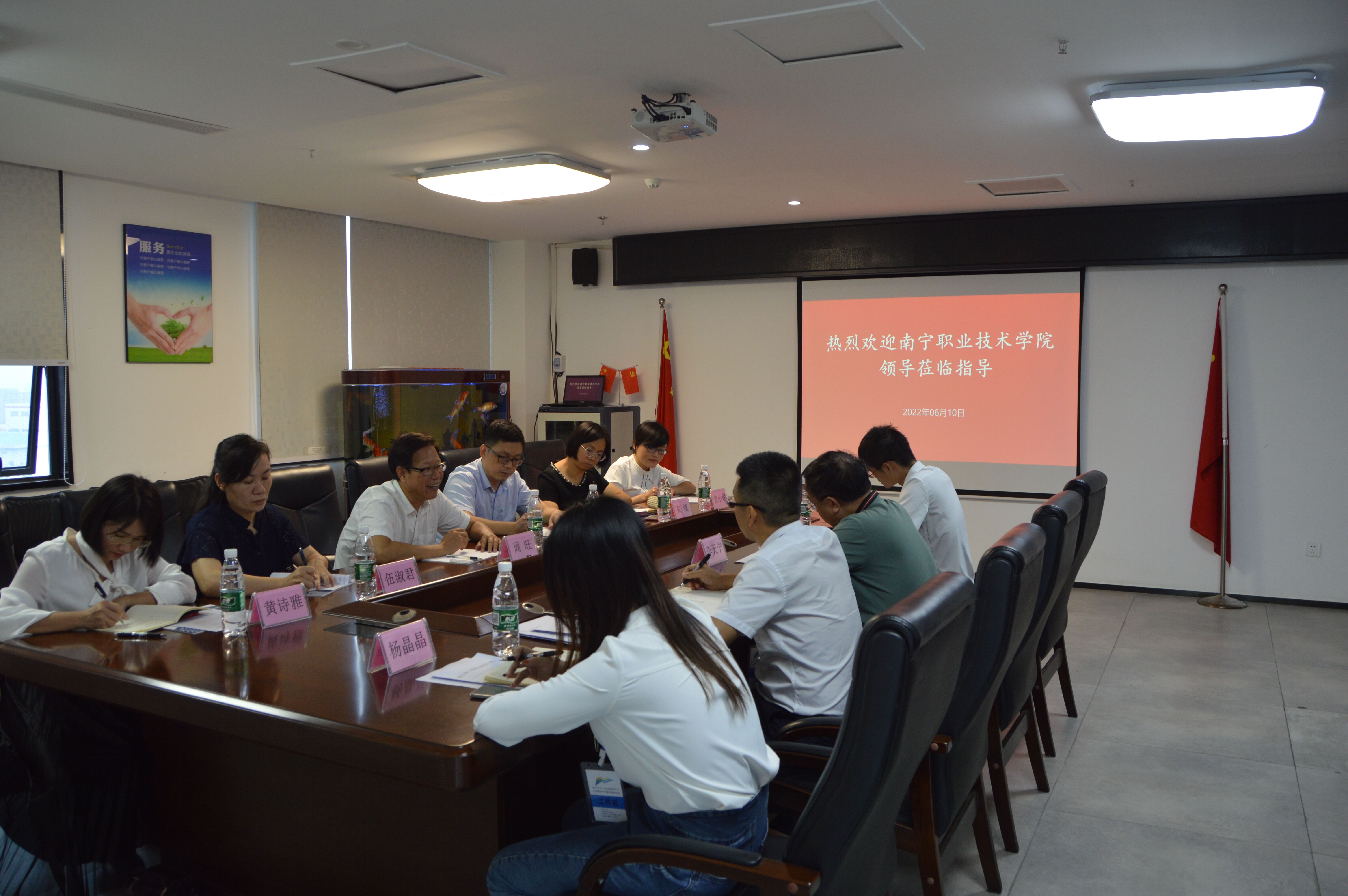 在南宁市中小企业服务中心高新区服务基地,李天宁副主任介绍了南宁市中小企业公共服务平台的发展历程和主要职责。座谈交流会上,中小企业服务中心引荐的广西揽胜企业管理服务集团有限公司负责人就公司的主营业务作了详细介绍,对必赢官网近年来派往公司的实习生给予高度评价,希望在人才培养、学生实习、就业指导等方面与必赢官网继续深入开展校企合作。