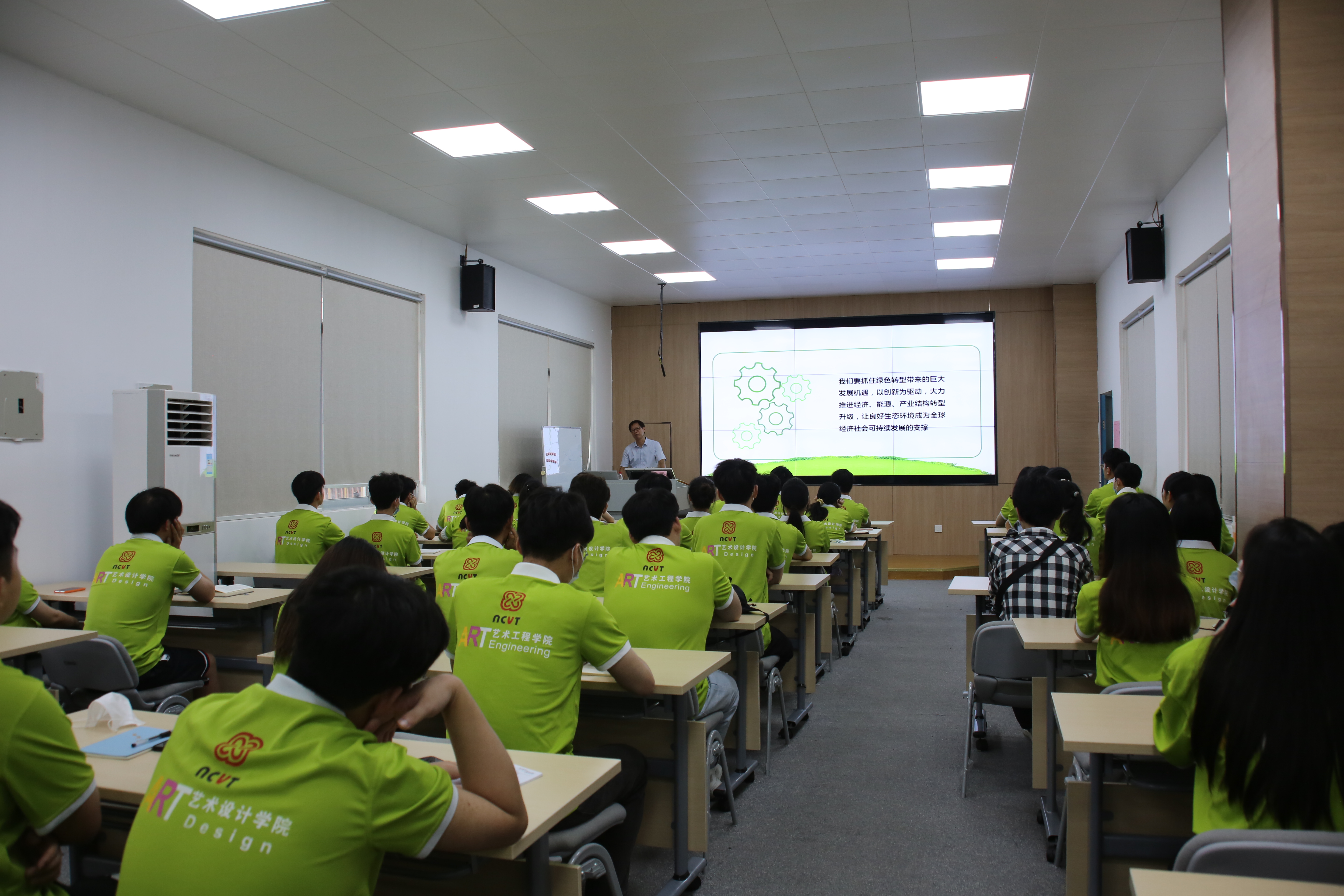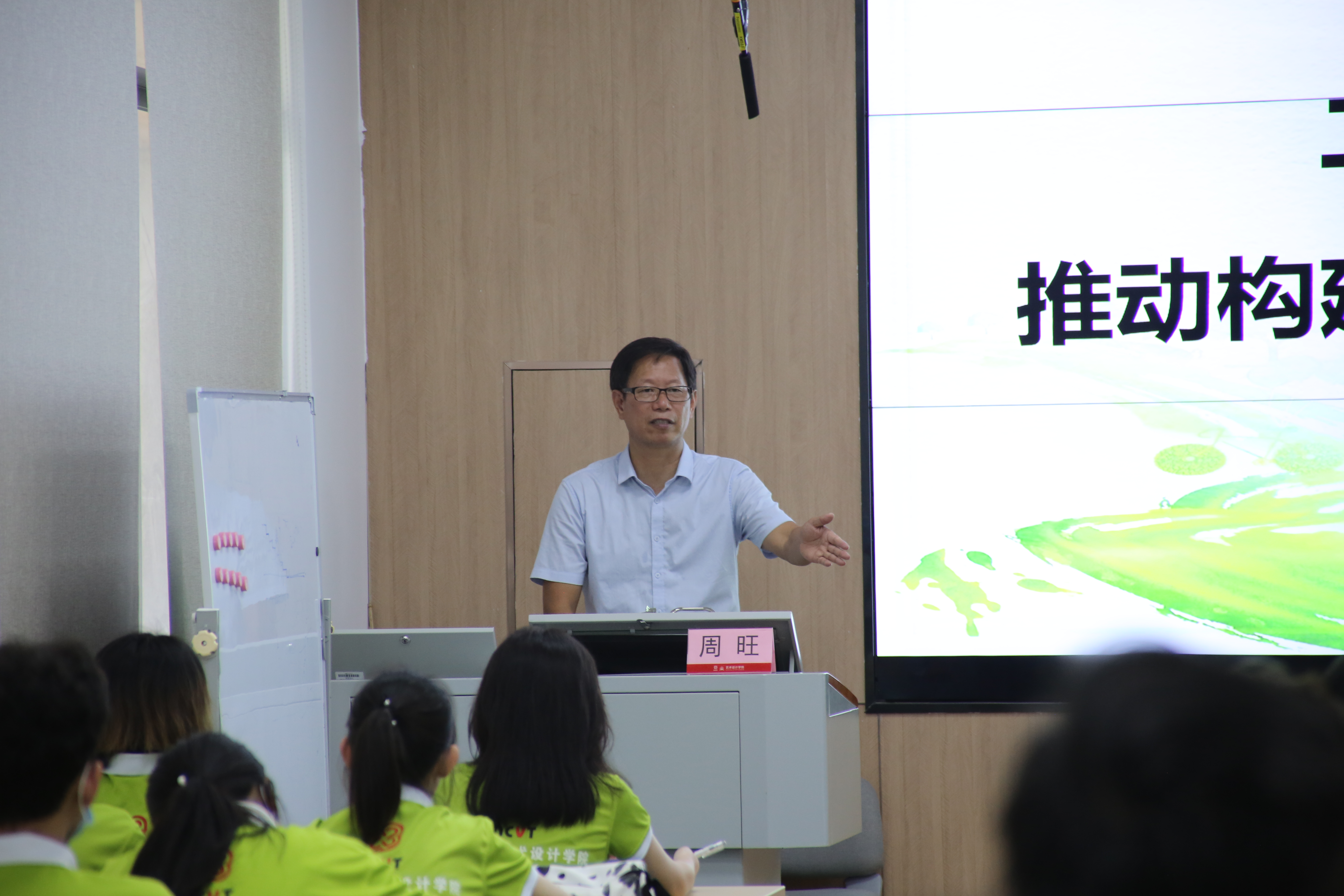 6月9日,学校校长周旺深入艺术设计学院,给学生党员、入党积极分子讲授题为《共同构建人与自然生命共同体》的形势与政策课。
