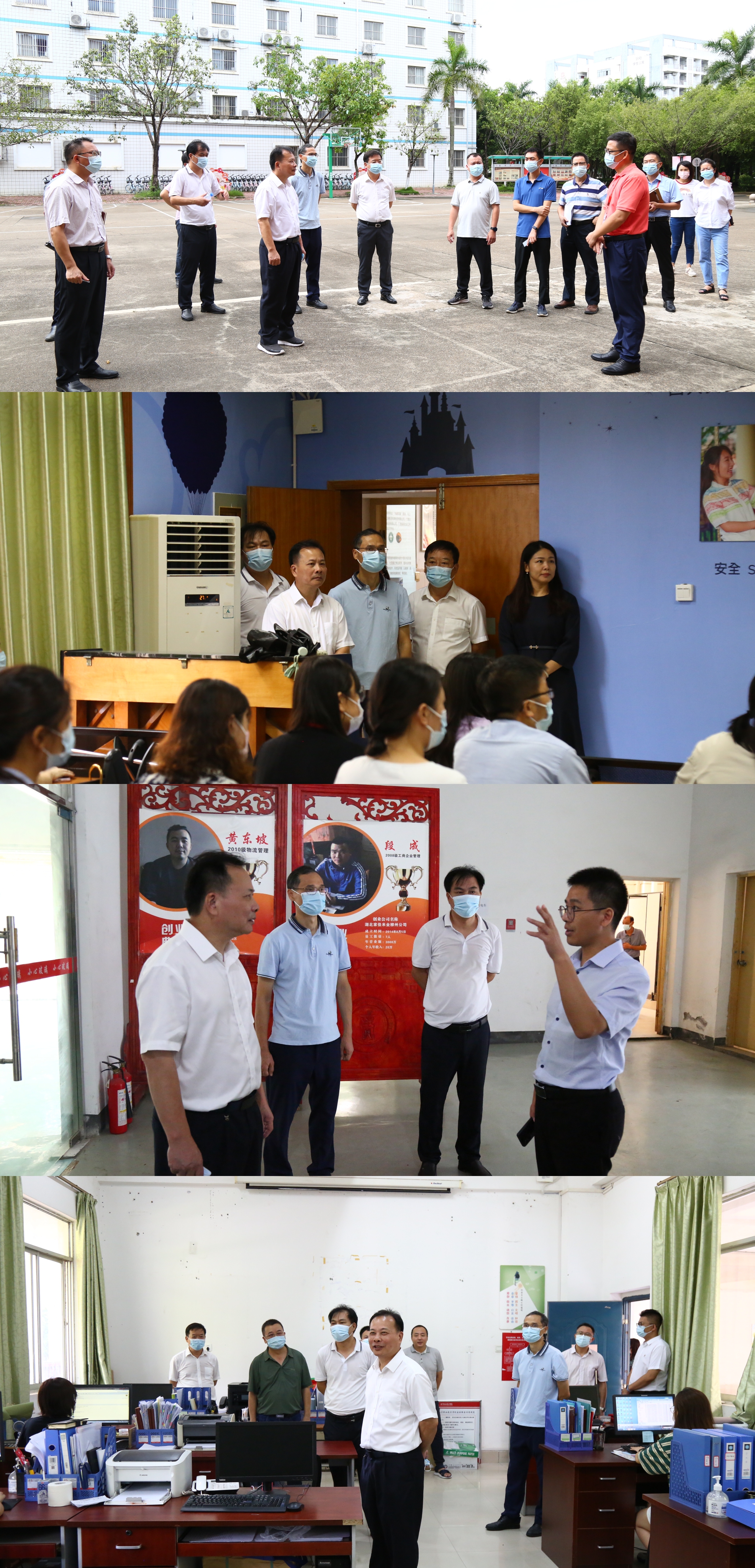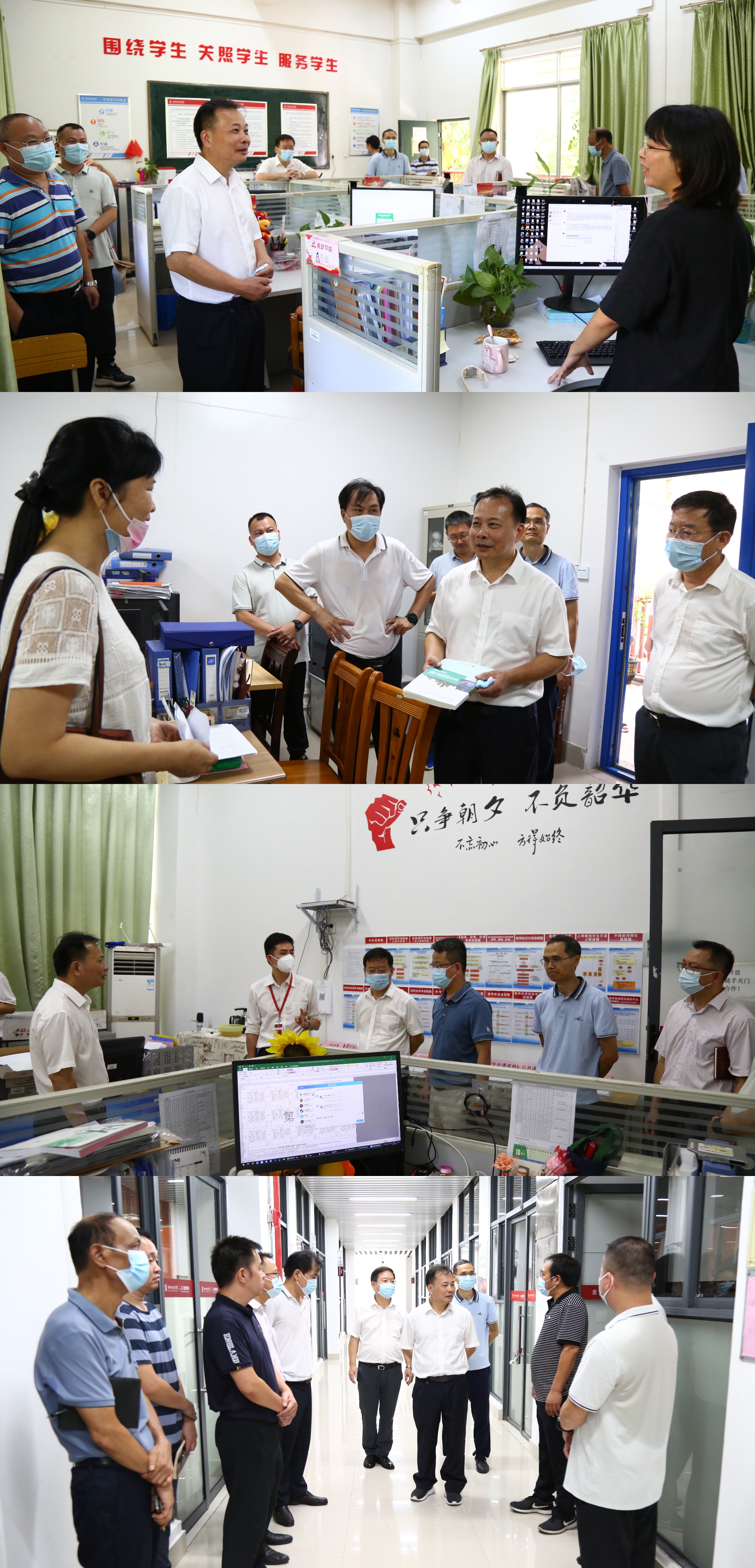 黄明瑞还先后走访了国际学院、健康与旅游学院、商学院、传媒学院、财经学院、建筑工程学院、智能制造学院、人工智能学院,以随机抽查、提问等方式,向各二级学院负责人深入了解暑假期间学生的健康、安全情况,学生返校整体情况以及开学各项准备工作开展情况等,强调要提前落实学生课本,上好开学第一课,认真检查老师备课情况,抓好学生宿舍管理。