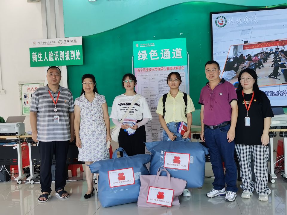 此外,学生工作处还贴心地准备了518份爱心大礼包,包含了席子、垫被、枕头、蚊帐以及三件套等,为家庭贫困的新生送去了学校的关心与温暖。