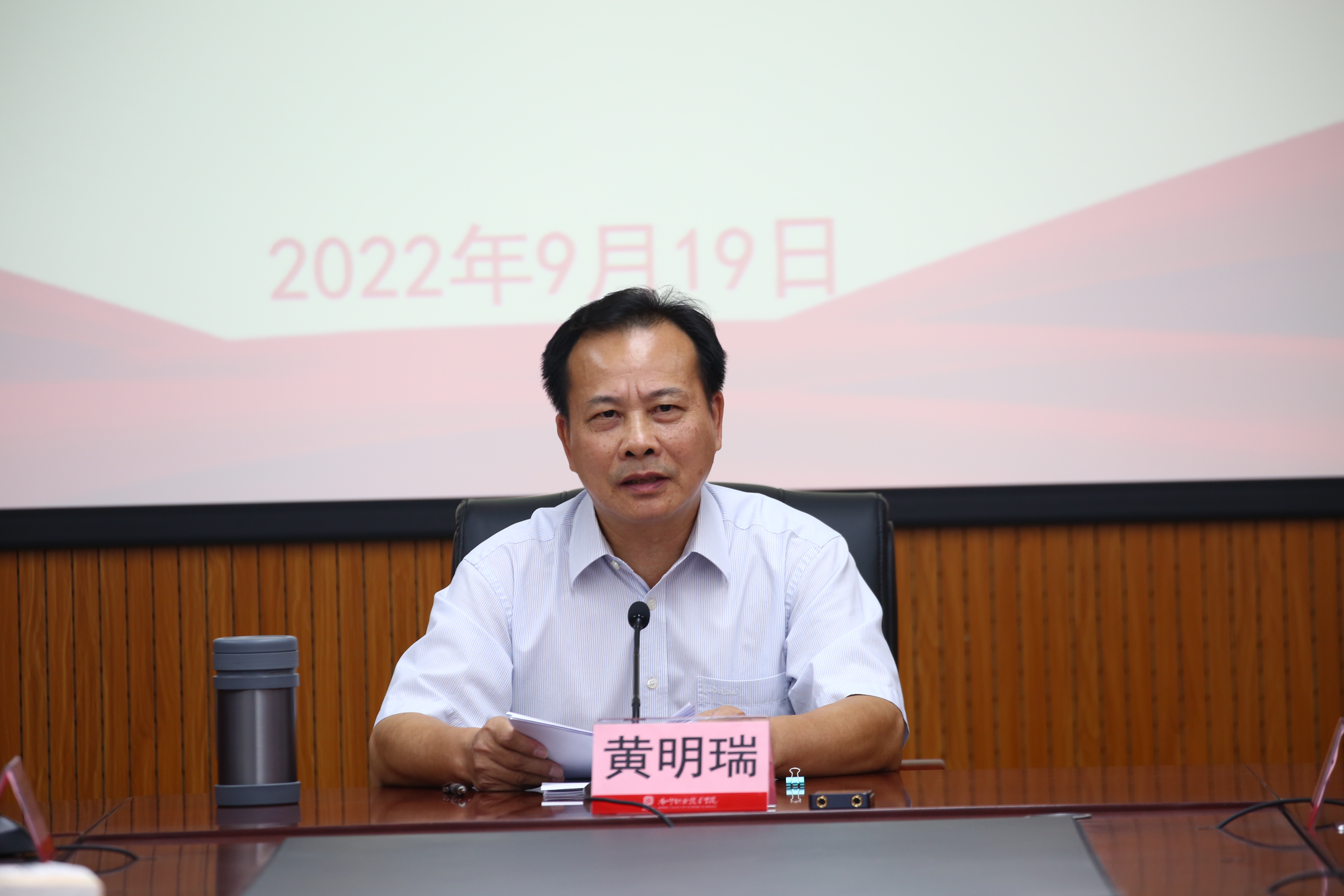 黄明瑞表示,坚持学以致用,找准用好习近平总书记系列重要讲话精神的结合点,推动习近平新时代中国特色社会主义思想落地生根。一要加强组织领导,筑牢理论武装思想根基。学懂弄通做实习近平新时代中国特色社会主义思想,学出政治忠诚、学出责任担当,学出坚定立场、学出过硬作风,切实把真理力量转化为干事创业的强大动力。二要严守阵地渠道,筑牢意识形态防范线。严密加强网络意识形态管理和舆情监控力度,提升舆情应急处置能力,进一步完善舆情信息处理流程和风险防控机制,牢牢把握意识形态工作主动权。三要强化安全底线,筑牢安保稳定防护网。深学笃用习近平总书记关于安全稳定工作的重要论述,以时时“放不下心”的责任感,严而又严、实而又实、细而又细抓好学校安全稳定工作。四要从严抓好防控,筑牢疫情防控防疫墙。落实、落细常态化疫情防控措施,密切监测审核新生的健康及行踪状态,统筹落实疫情防控和校园服务保障措施。五要紧盯目标任务,奋力交出年度高分答卷。发挥引领示范作用,主动扛起责任担当,加快推进预算执行进度,确保年度重点工作任务落地见效。