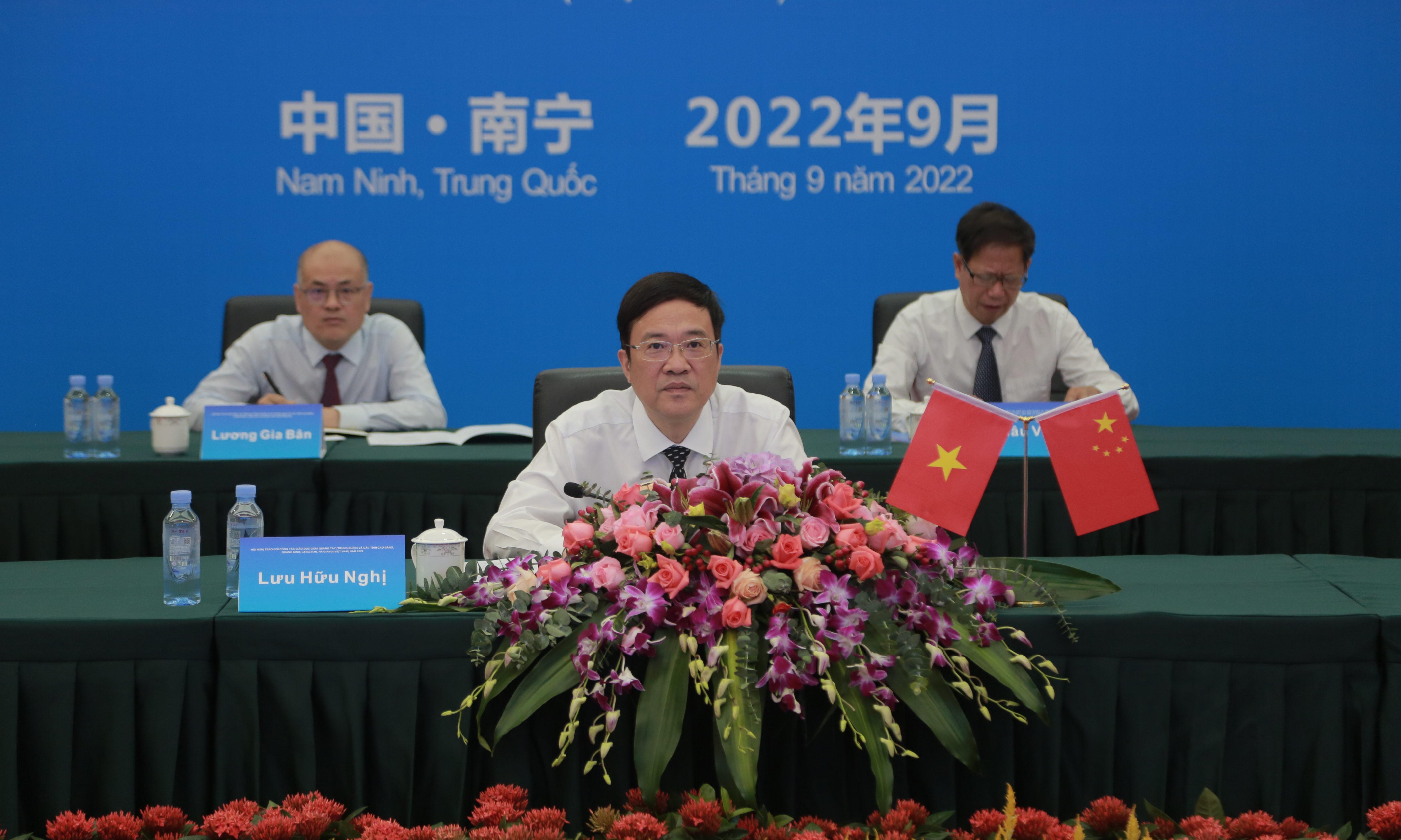 会上,越南高平省人民委员会副主席、常务委员会委员黎海和高度赞赏双方在教育合作领域取得的积极成果,尤其是通过提供奖学金、互派教师和学生等形式在人力资源培训、高等教育和研究生培养方面合作取得的成果。他建议越南高平、广宁、谅山、河江省教育培训厅、劳动荣军和社会厅与中国广西教育厅深入讨论,共同提出更加具体、更加务实的合作内容和合作新方向;继续发挥沟通协调机制作用,在现有合作的基础上,提出新的合作内容,尤其是职业教育方面的合作,以满足双方的需求和利益。