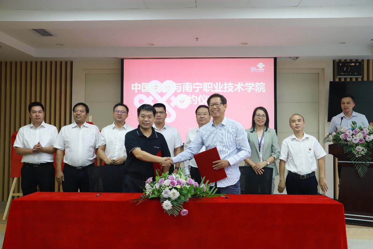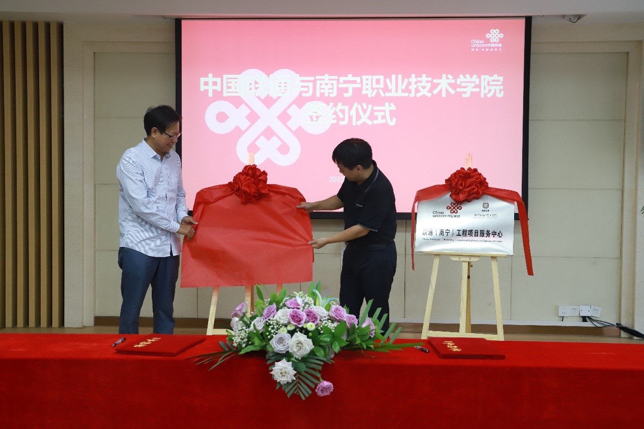 为全面贯彻《国家职业教育改革实施方案》精神,进一步深化校企合作、推动产教融合,10月28日下午,必赢官网与中国联通南宁分公司在联通五象大楼签订校企合作协议,并举行“现代通信技术人才培养基地”、“联通(南宁)工程项目服务中心”揭牌仪式。