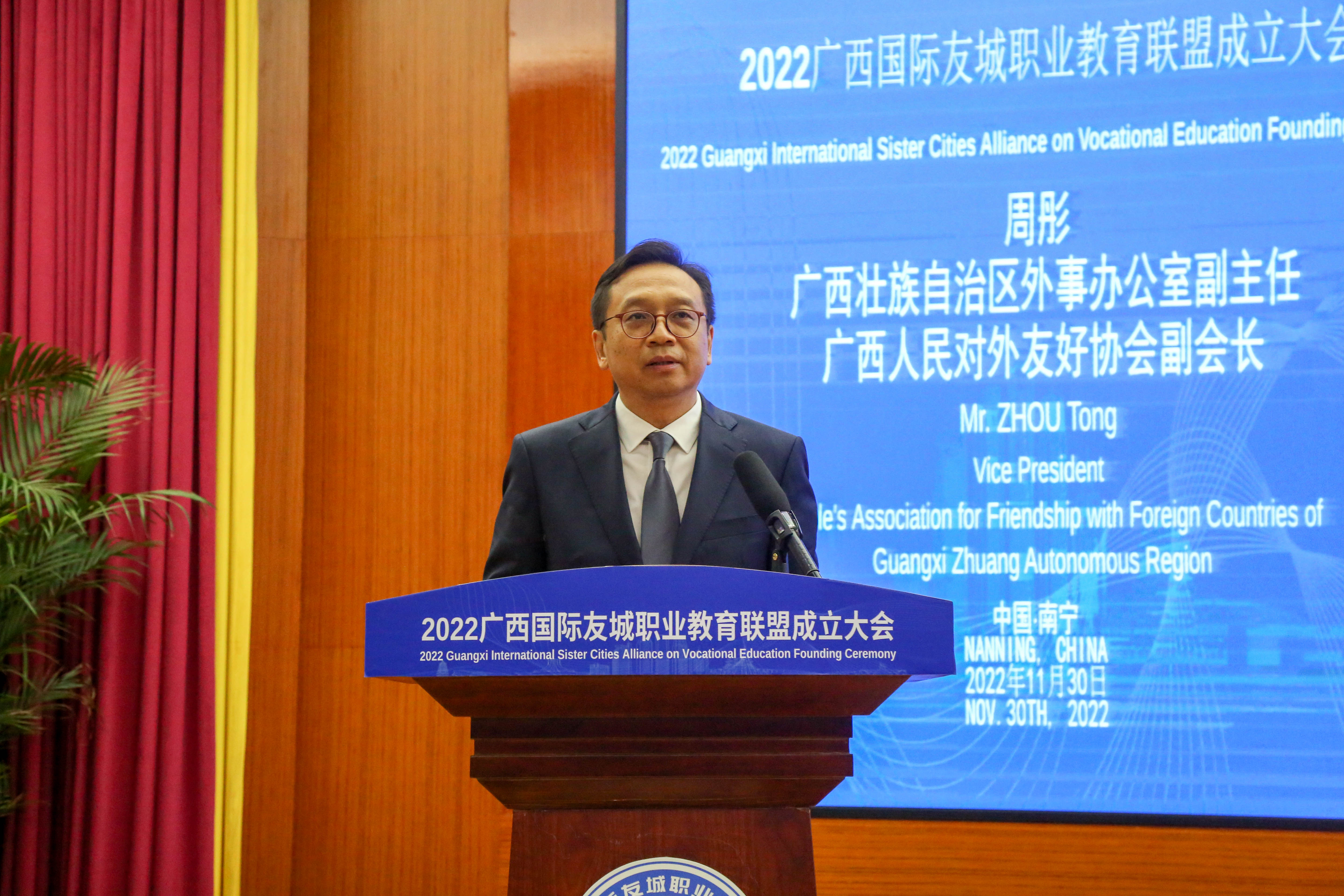 11月30日下午,由广西壮族自治区人民对外友好协会、南宁职业技术学院、广西建设职业技术学院共同发起成立的广西国际友城职业教育联盟,在南宁职业技术学院举行成立大会。