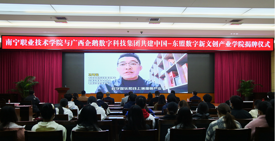 南宁职业技术学院“中国-东盟数字新文创产业学院”揭牌仪式现场(南职融媒梁译/摄)