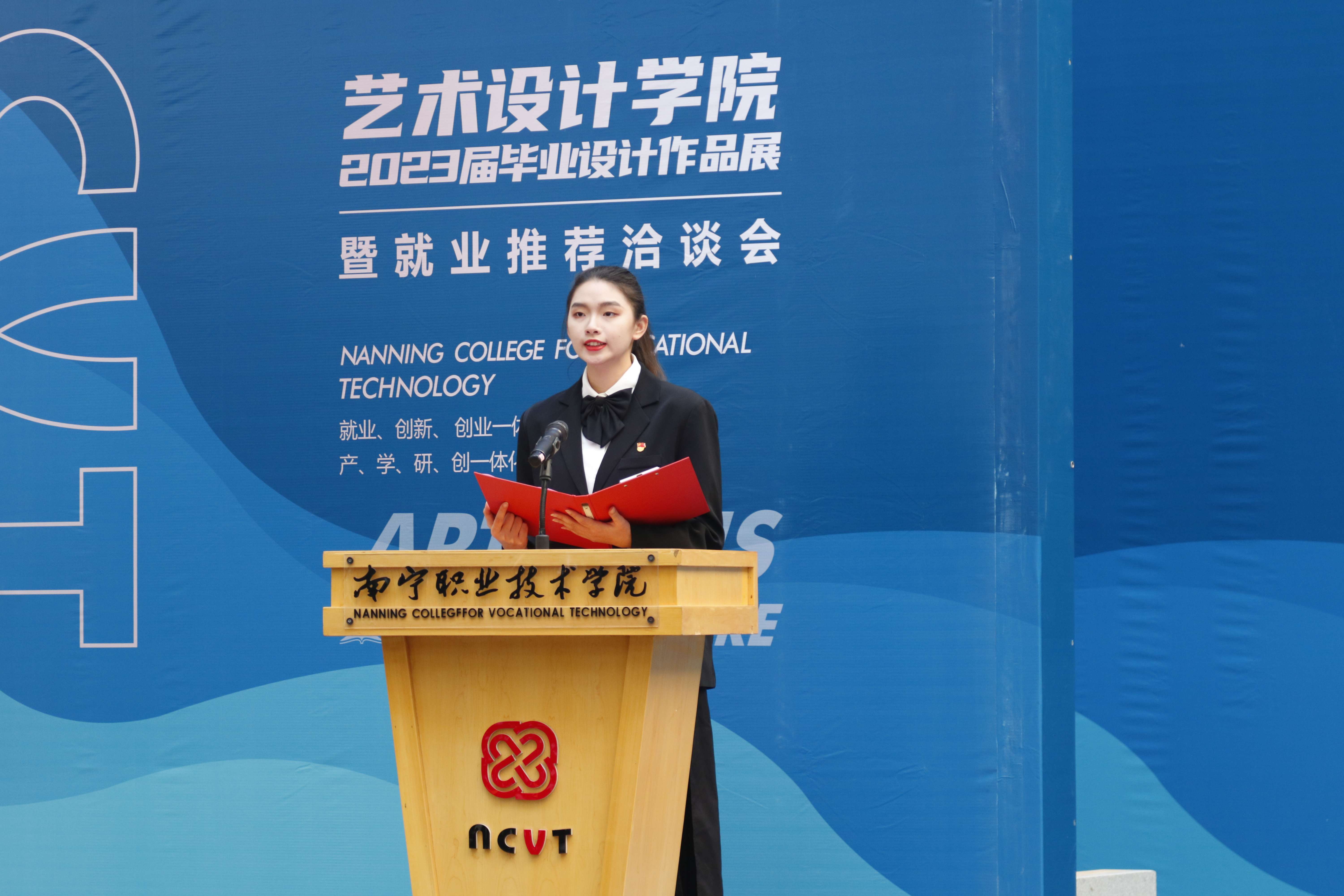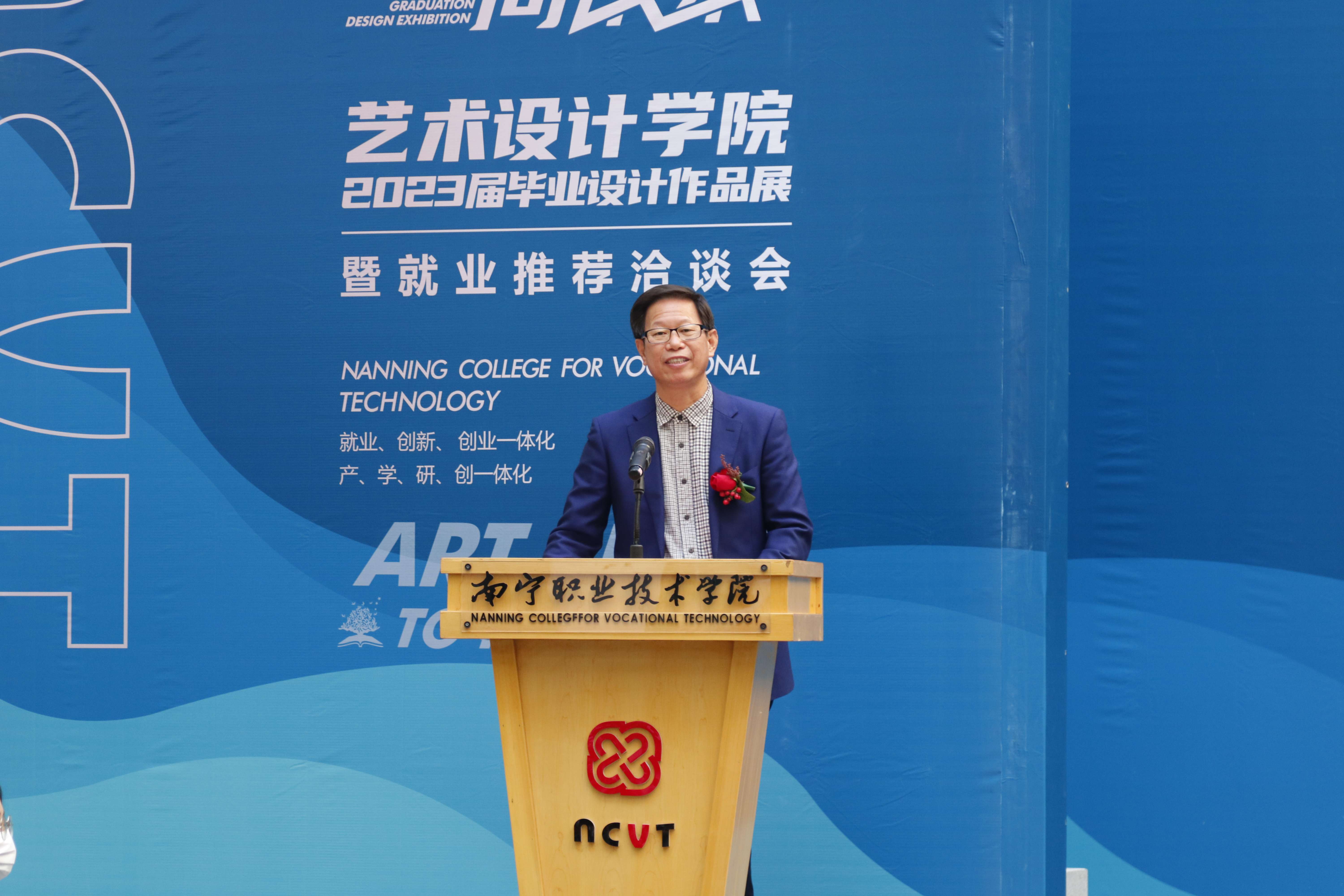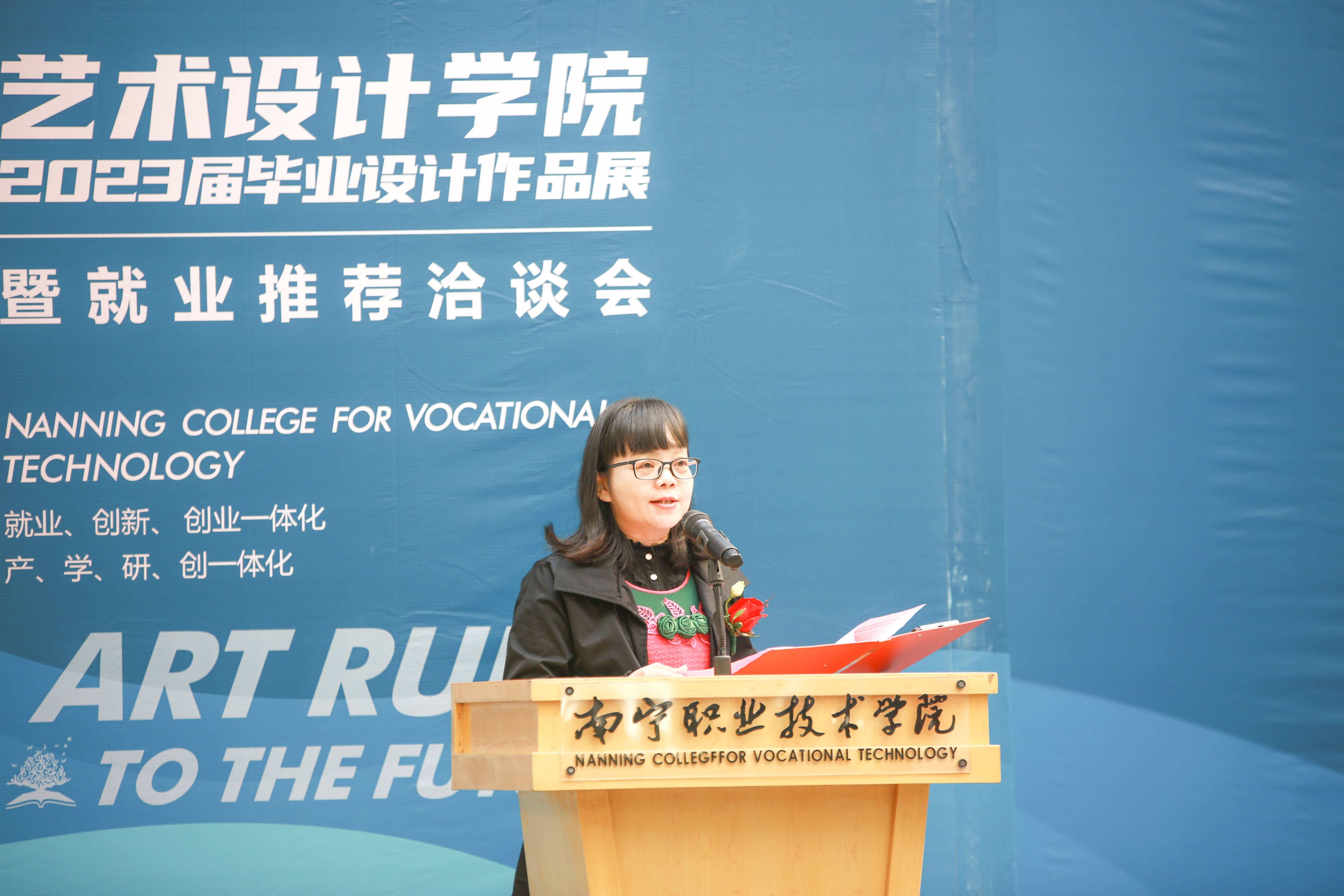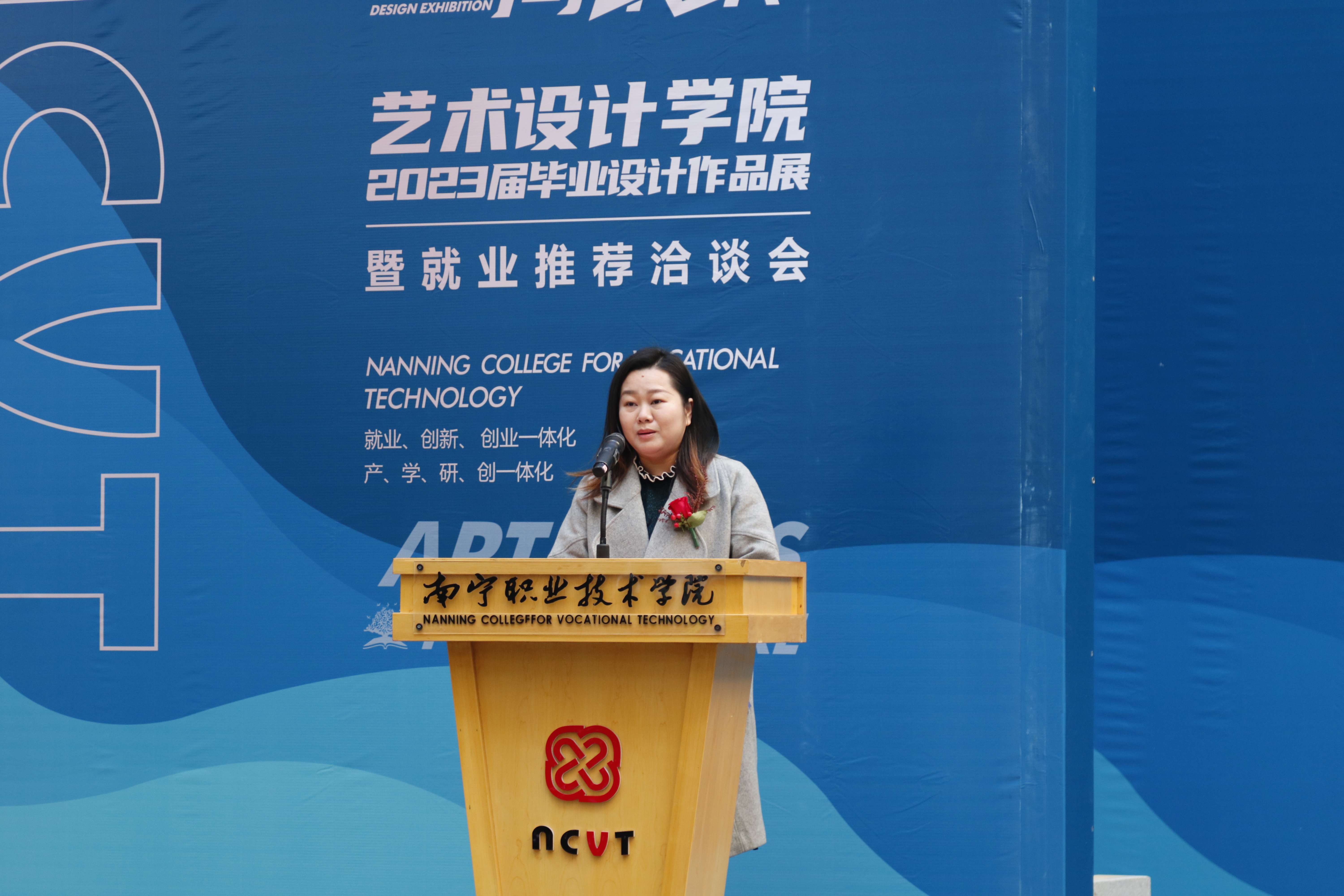 12月13日上午,艺术设计学院“艺起跑·向未来”2023届毕业设计作品展暨就业推荐洽谈会,在四号教学楼一楼隆重开幕。学校校长周旺,副校长黄春波,学校教务处处长王敦,学生工作处副处长莫家业,企业嘉宾以及艺术设计学院全体师生代表参加开幕式。开幕式由艺术设计学院党委书记、院长陈尚玲主持。