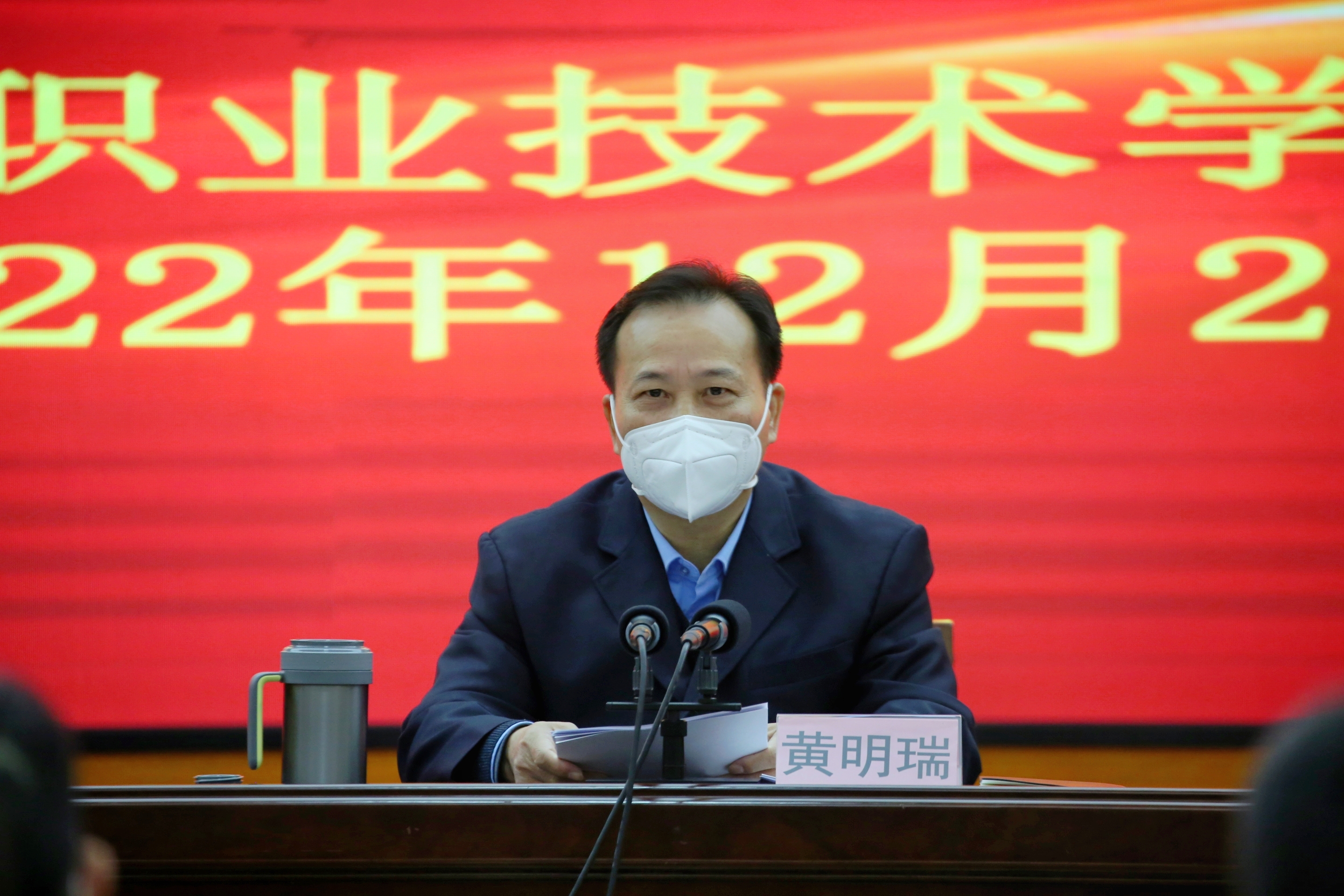 黄明瑞在讲话中,全面总结了2022年学校在党的建设、“双高”建设、升本工作、教育教学改革、人才干部队伍建设以及加强和改善民生等方面取得的可喜成绩,深刻剖析当前工作存在的不足。他指出,过去的2022年,在全体教职工的努力下,稳住了教育发展基本盘,发展质量效益有新的提高,民生福祉有新的增进,推动办学治校行稳致远。2023年,职业教育发展迎来快速发展、高质量发展的重要机遇,全校上下要凝心聚力,勇挑重担,重点从5个方面发力:一是要加强党的二十大精神学习,在全面学习、全面把握、全面落实上下功夫;二是加强明年工作谋划,在全面贯彻新发展理念、全面融入新发展格局上下功夫;三是要加快建设“双高”校,在千方百计、全力以赴确保全面建成上下功夫;四是要抓好升本工作,在强弱项补短板、全力破解瓶颈问题上下功夫;五是要抓好全面从严治党,在持续涵养风清气正的政治生态上下功夫。