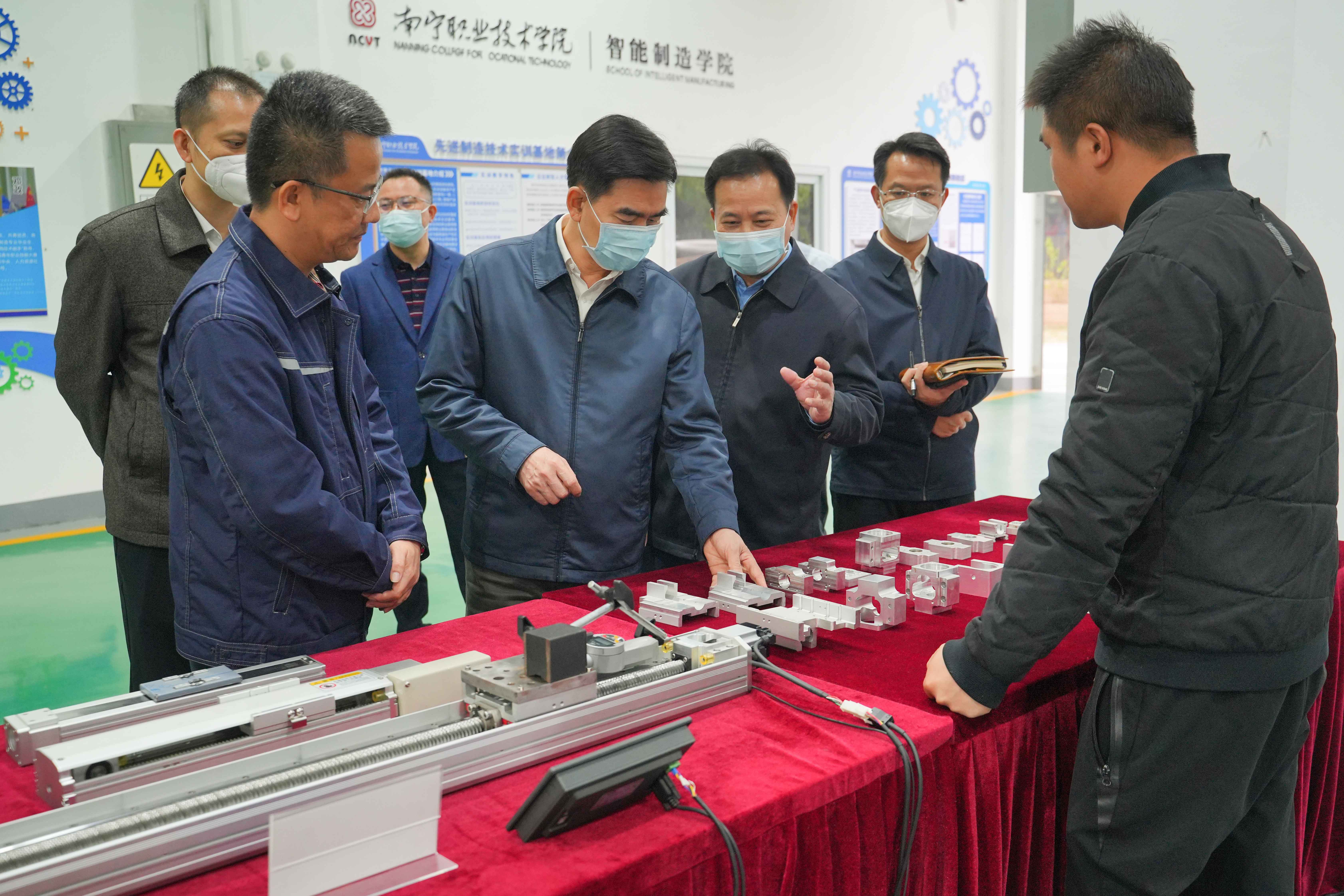 杨维超(右四)在必赢官网智能制造学院调研(南职融媒赵宗鼎/摄)