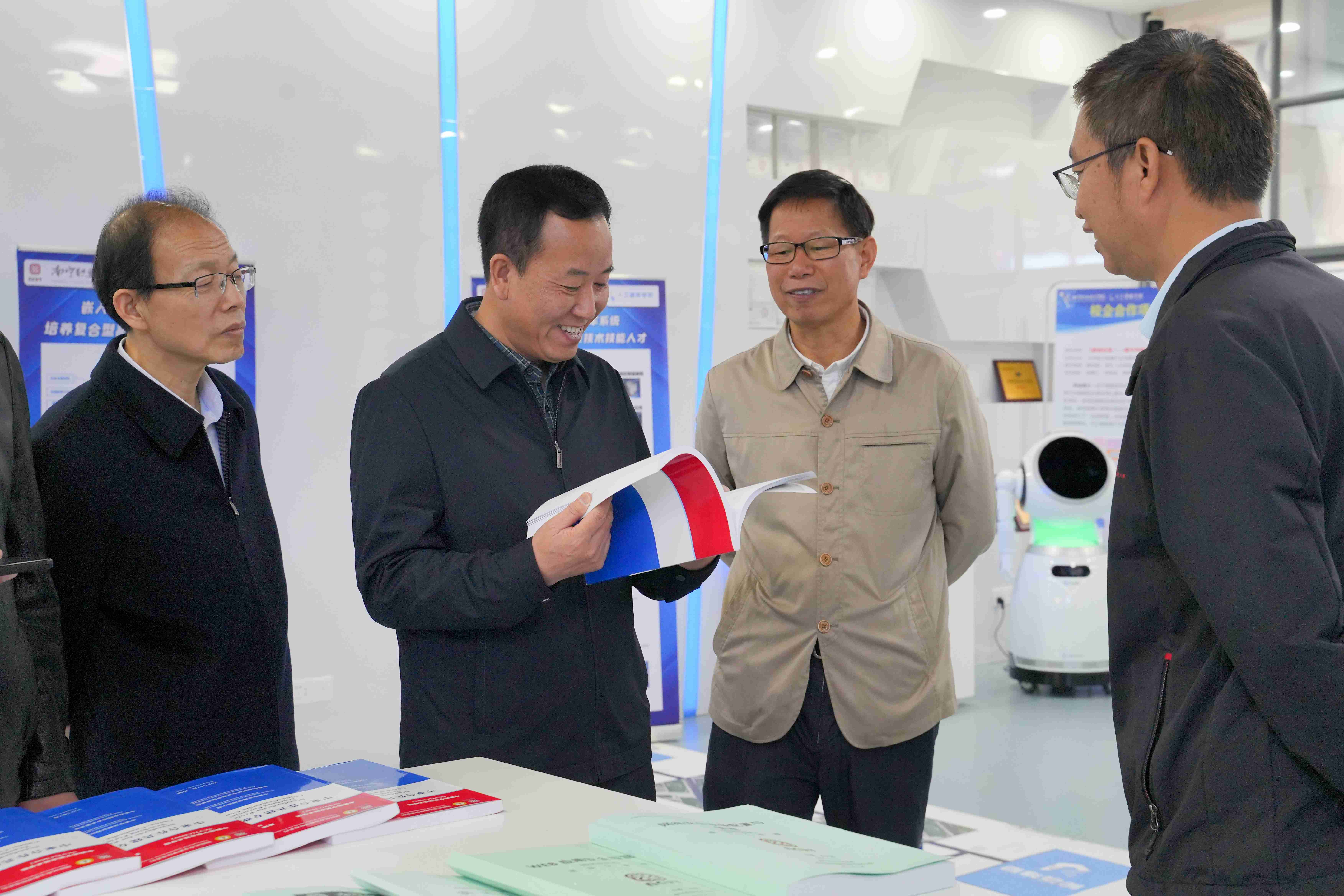 考察团一行实地考察了新能源汽车学院、智能制造学院、人工智能学院、艺术设计学院的实训基地,详细了解必赢官网国家“双高”建设和校园信息化建设及应用情况,并对必赢官网在专业群建设、人才培养、师资队伍建设、校企合作、实习实训、智慧校园建设等方面取得的成果给予充分肯定,表示希望双方进一步加强交流合作,不断提升学校内涵建设,推动学校高质量发展。