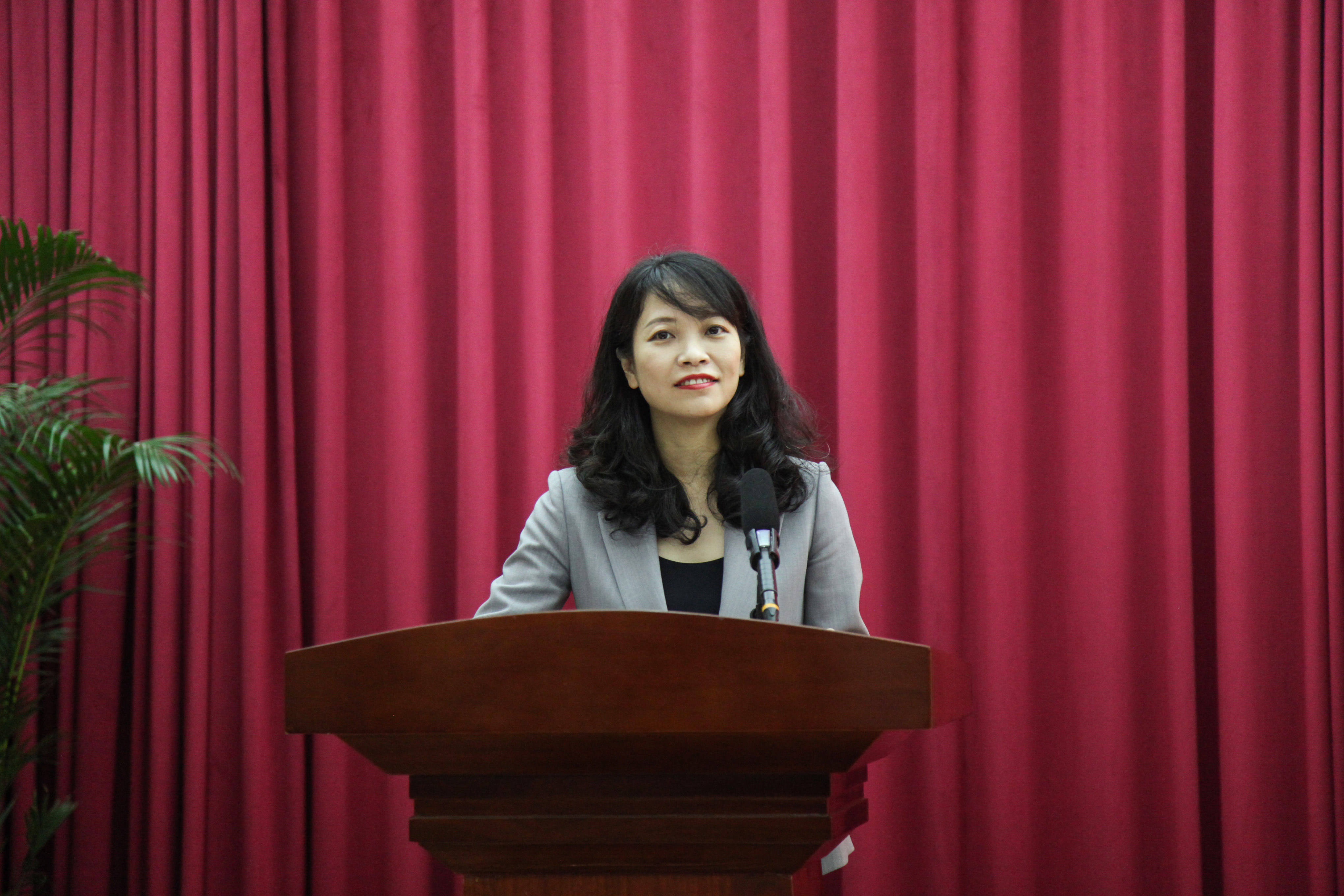 广西华丽播文化传媒有限公司副董事长、总经理覃莉致辞(南职融媒梁译/摄)