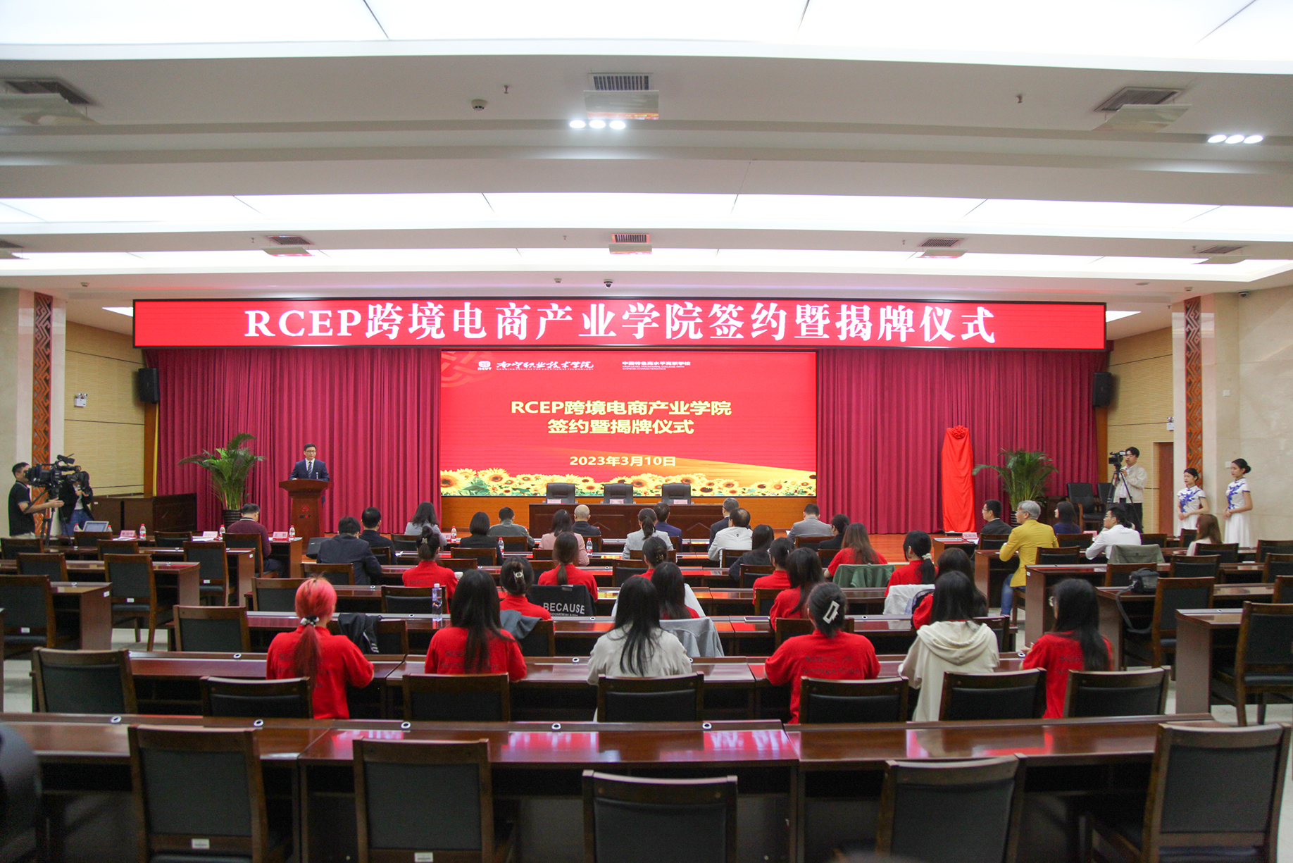 3月10日上午,南宁职业技术学院、广西广电网络参股子公司广西华丽播文化传媒有限公司、厦门颜值立方信息科技有限公司在必赢官网举行签约仪式,标志着三方共建的RCEP跨境电商产业学院正式挂牌成立。