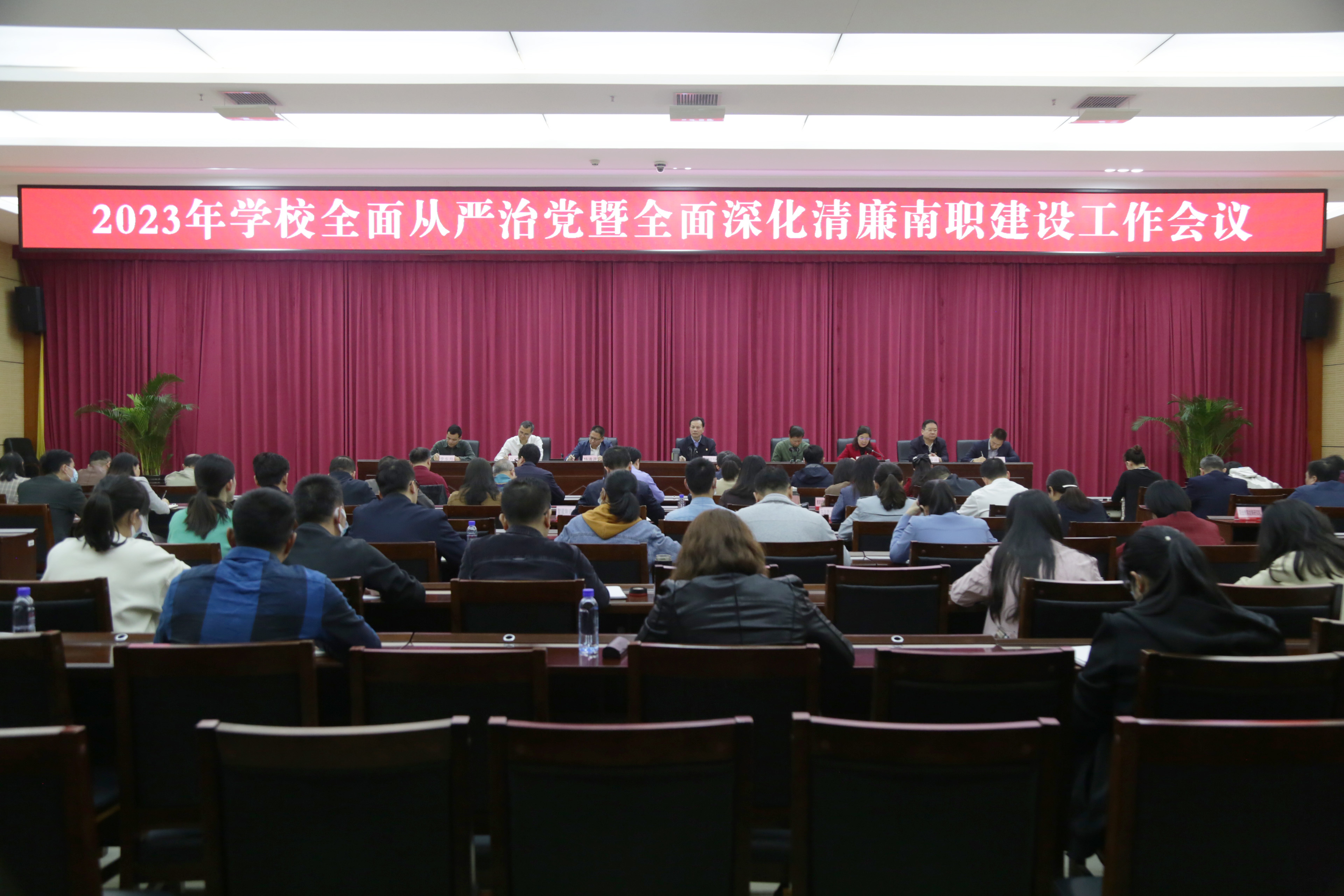 2023年学校全面从严治党暨全面深化清廉南职建设工作会议现场(南职融媒黄显璐/摄)