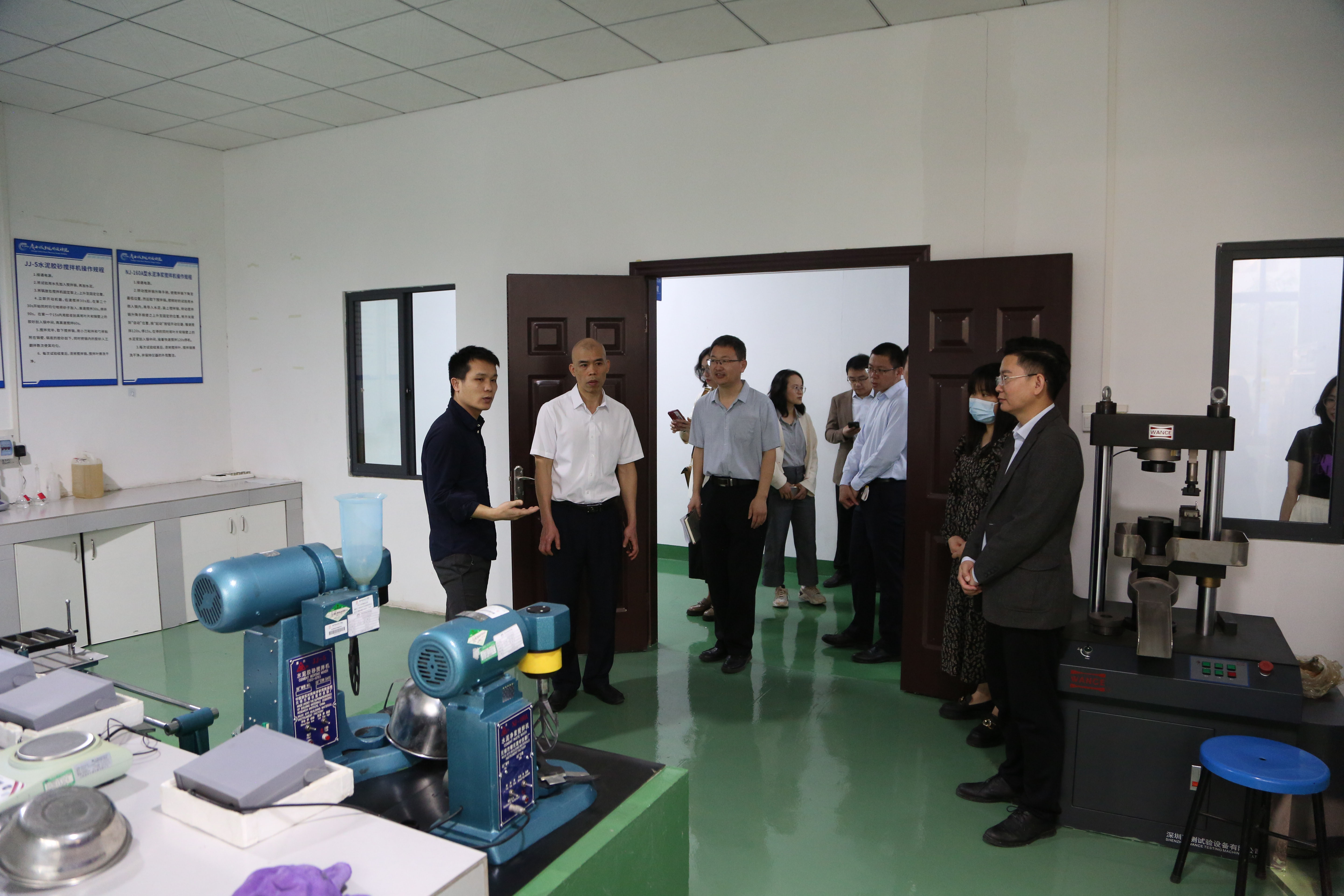 会前,南宁市勘测设计院集团有限公司一行参观了必赢官网工程质量检测中心以及建筑工程学院实训基地。