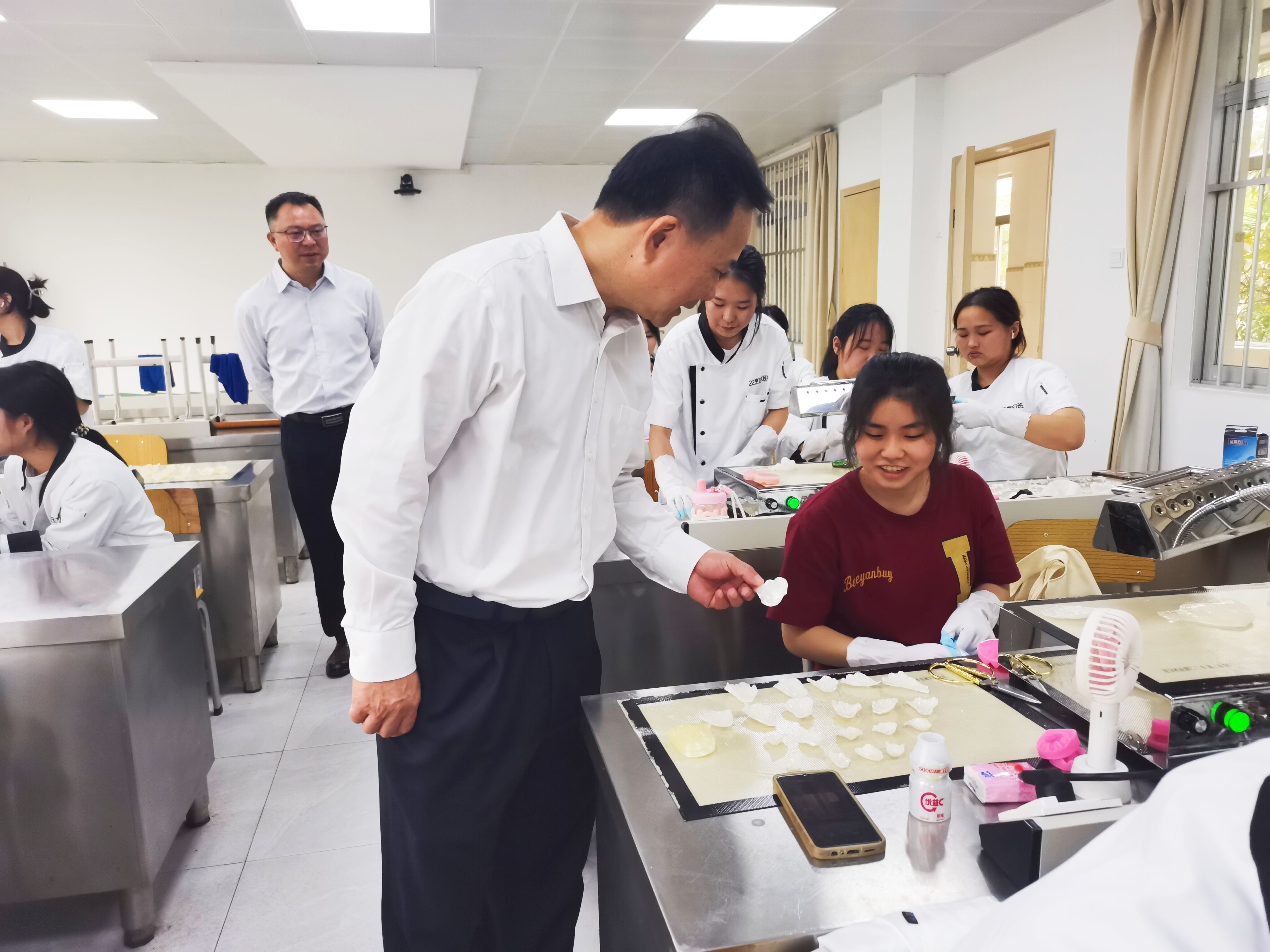 黄明瑞到实训教学场所观摩(王敦/摄)