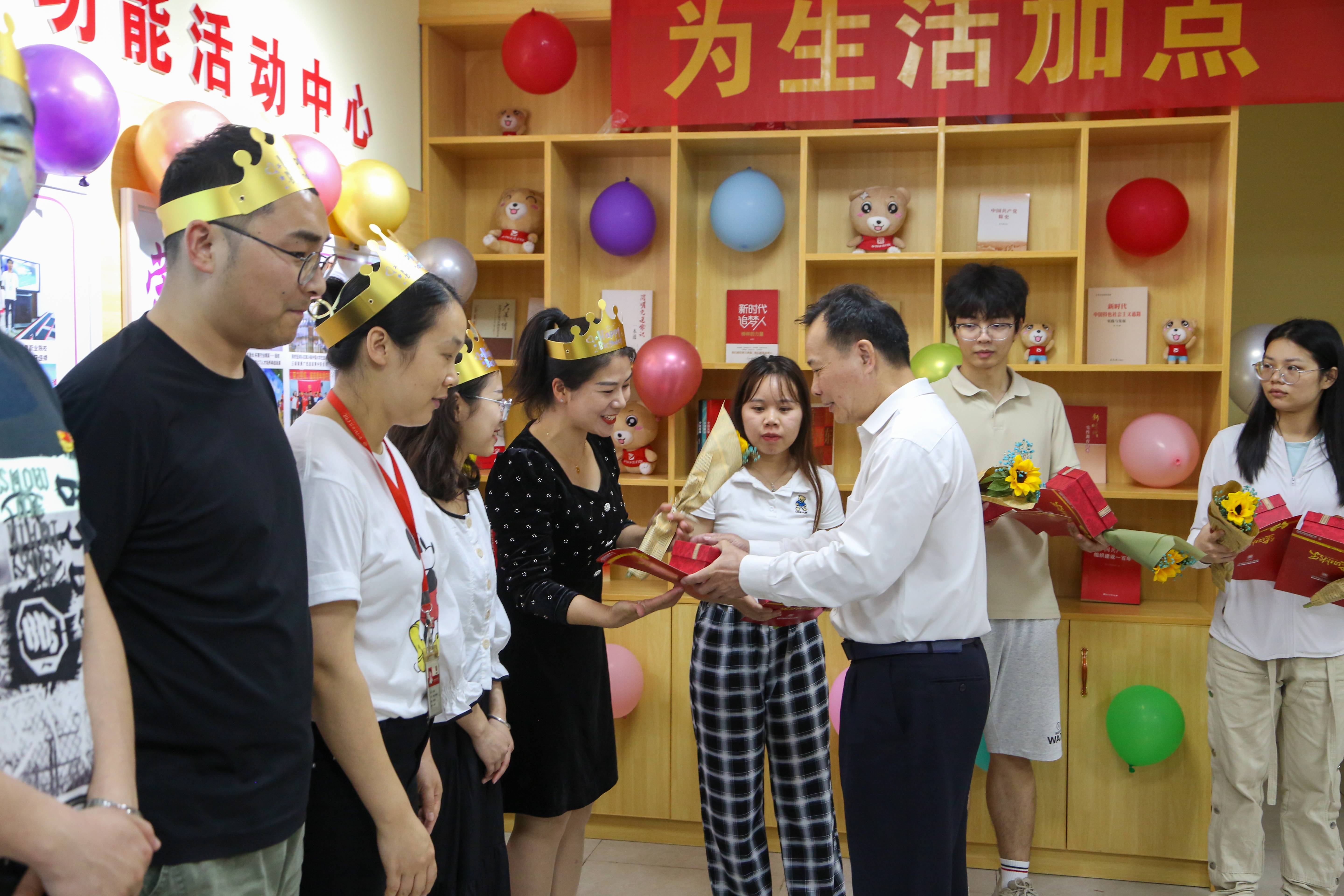 黄明瑞为辅导员颁发生日贺卡和纪念品(南职融媒岑广路/摄)