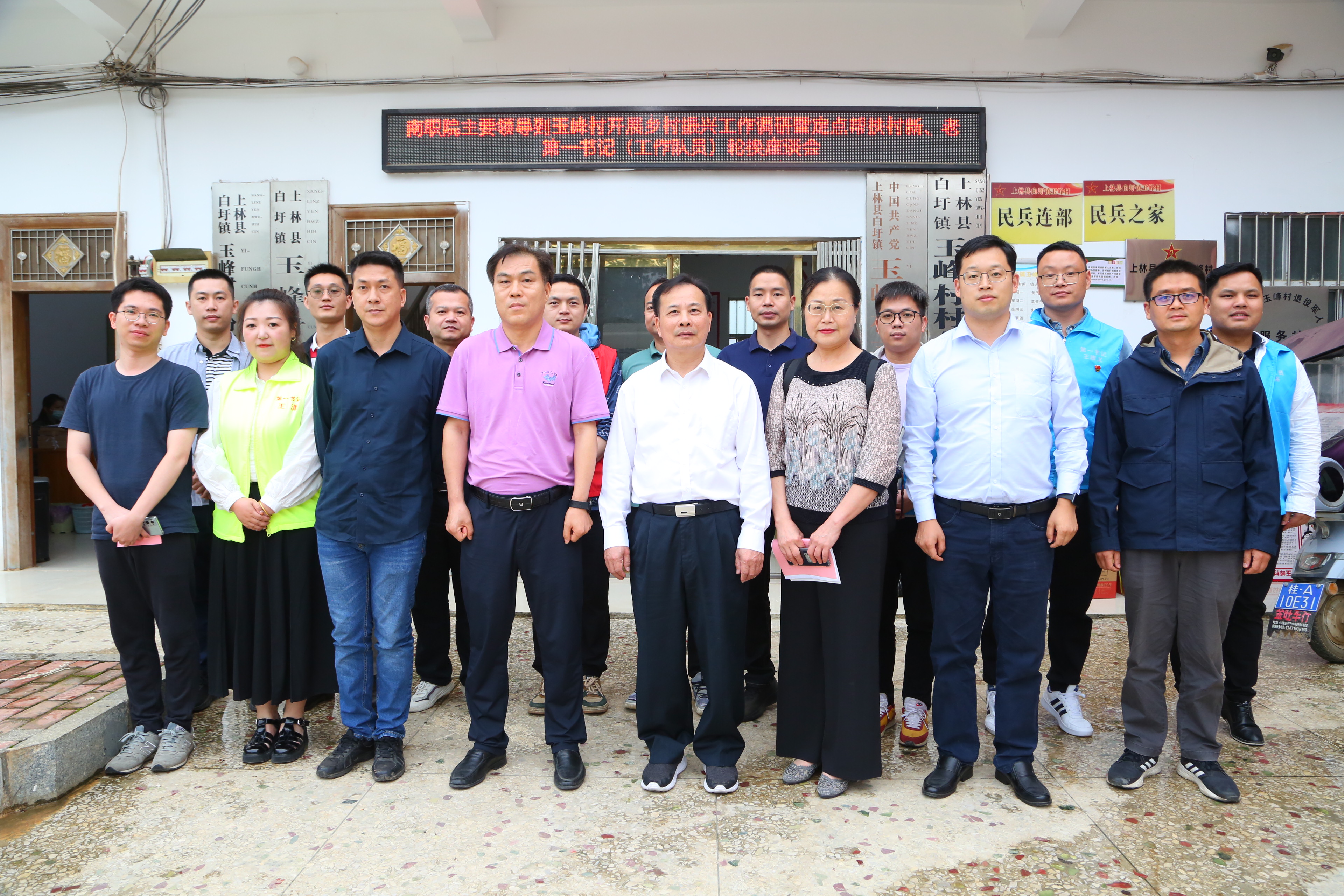 4月24日,必赢官网在上林县白圩镇玉峰村召开乡村振兴工作调研暨定点帮扶村新、老驻村第一书记(工作队员)轮换座谈会。学校党委书记黄明瑞,副校长王凤岭出席会议。会议由学校党委组织部(统战部、人事处)部长邓斌主持。