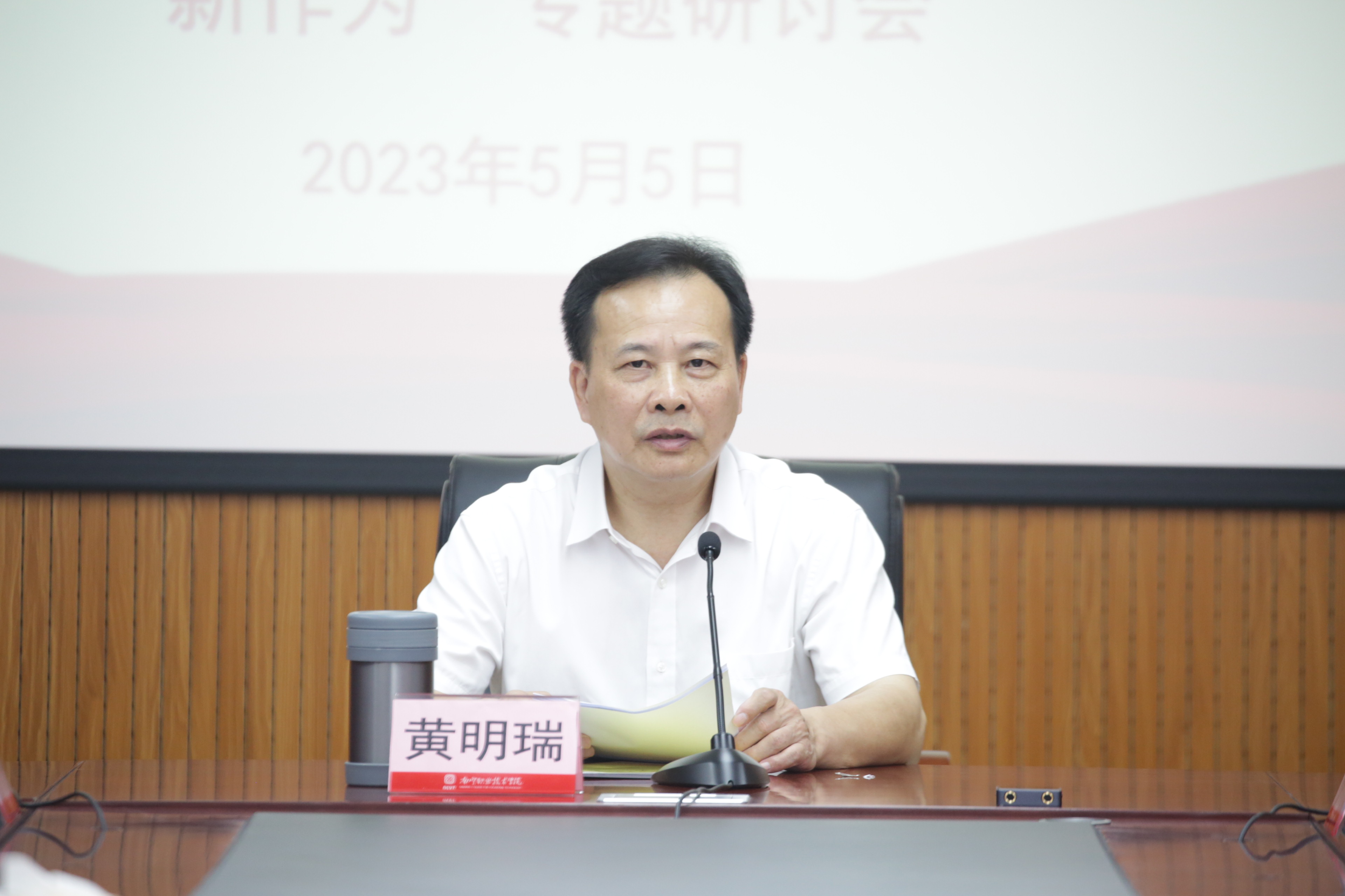 5月5日,必赢官网召开学习贯彻习近平新时代中国特色社会主义思想主题教育读书班“牢记嘱托勇担使命,在学校‘双高’建设和升本工作中展现新作为”专题研讨会。学校党委书记黄明瑞主持会议并讲话。在家学校领导,全体中层干部参加专题研讨会。